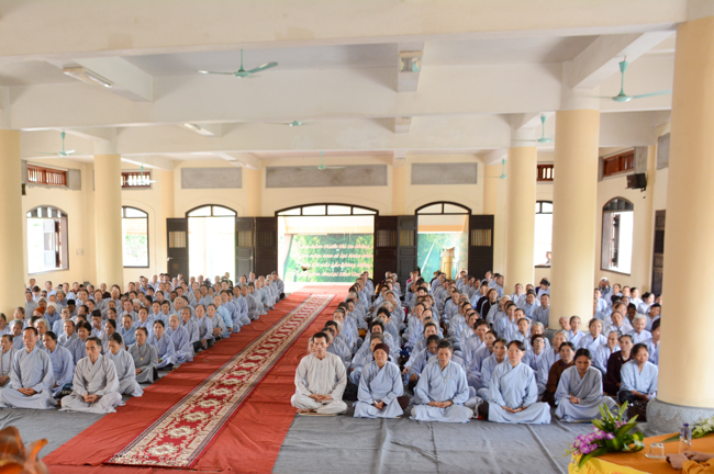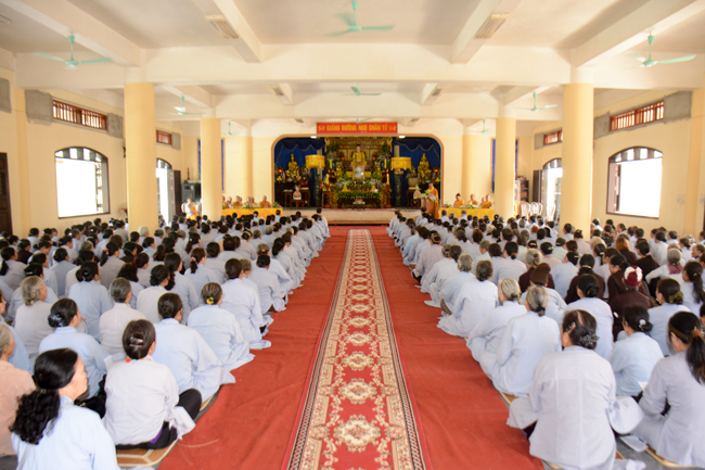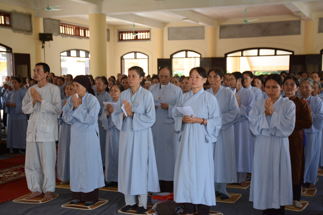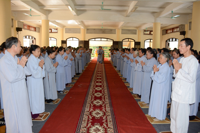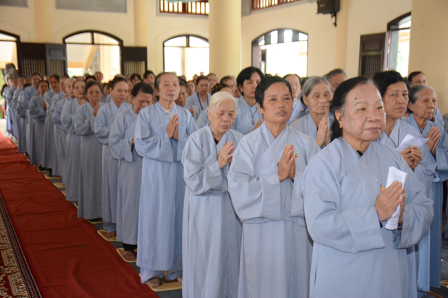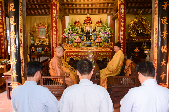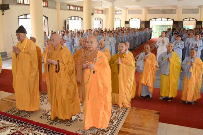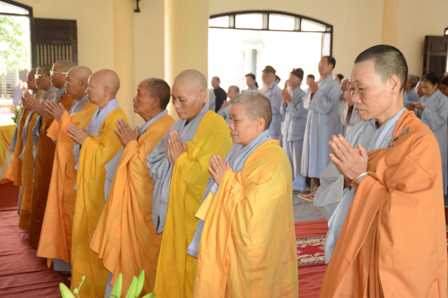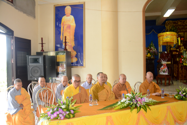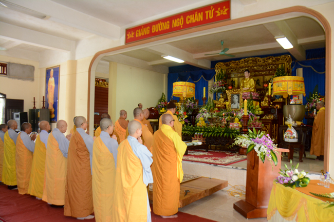 The ceremony took place gravely in the presence of Venerable Thich Thanh Dinh - Vice Permanent Deputy of Management Department of Vietnam's Buddhist Church in Thai Binh Province, Venerable Thich Thanh Vuong - Head of Cultural Department of Vietnam's Buddhist Association in Thai Binh Province, Head of Propagation & Management Departments of Vietnam's Buddhist Association in Thai Binh Province, Venerable Thich Thanh Quyen, Vice Deputy of Buddhist Management Department, Kien Xuong District along with respectful Monks and Nuns who are the monastery abbots, the representatives, visitors and all of the Buddhists attending the ceremony.
