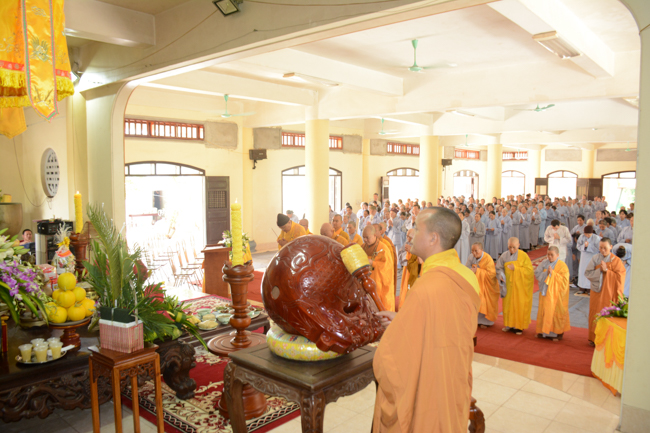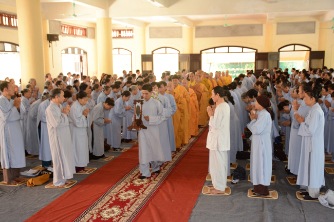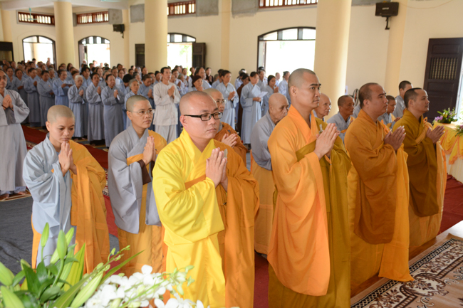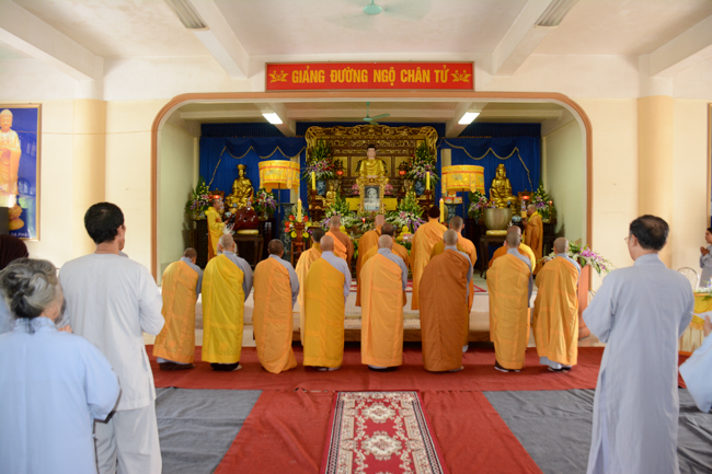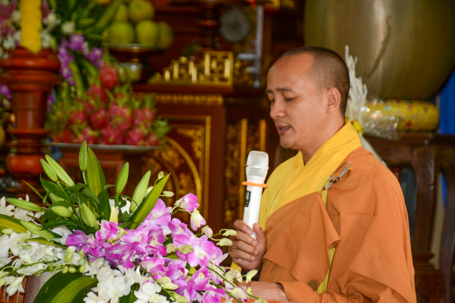 At the ceremony, Venerable Thich Tam Quan, on behalf of all the Buddhist sectarians, proclaimed the biography of the Late Elder Superior Monk Ngo Chan Tu, reviewing the primary features about the Buddhism learning and practicing processes of the Initiator so that the Buddhists can get to know more about his lofty life and religious career. The program continued with a moment's commemorating the Great Monk, which is probably considered a wayfor all the Buddhists to inwardly remember a heart of the Bodhisattva, who was unselfish and altruistic, and who was devoting his life to the sake of all living beings. This helps, in that way, to fuel the power and strengthen diligence during the learning and practicing processes as well as to transform sorrow in life.