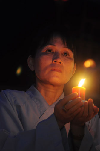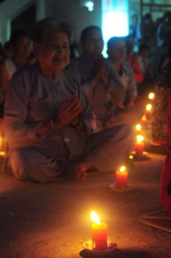 Next, the program continued with rituals transmitting\r\nlights. Candles of compassionate wisdom were lit by the Most Venerable from the\r\nBuddha table and from his first candle, the abbot Junior Venerable slowly\r\nspread to the Buddhists, which is the symbol of lantern posting rituals. The candle\r\nbrings light of love, of understanding, of faith, hope and salvation, and it\r\ncontinues to be transmitted to other Buddhists as if to remind one thing that\r\nthrough the candle lofty values of ethics which will always maintain and exist\r\nto let our life uplifting, happy.