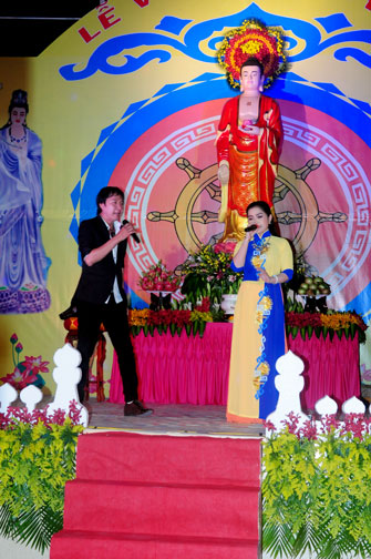 In the program of this day, there is the performance of the\r\nsingers, artists: The Vu, Diep Tu Hong, Chung Tu Long, Hong Hanh, Dinh Phong,\r\nTan Beo comedy group, Tan Bin, Pham Anh Thu, Vu Luan, etc, with songs and\r\nsinging offering to the Buddha.