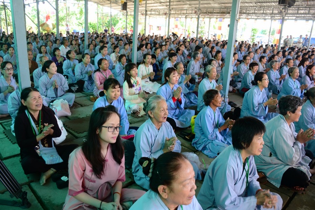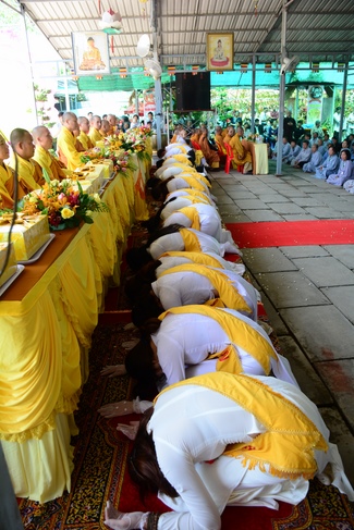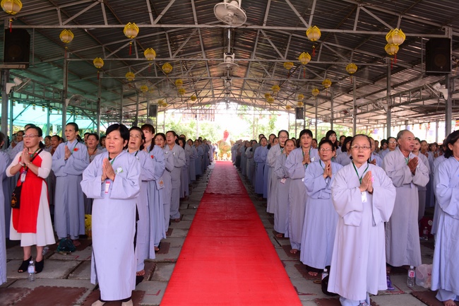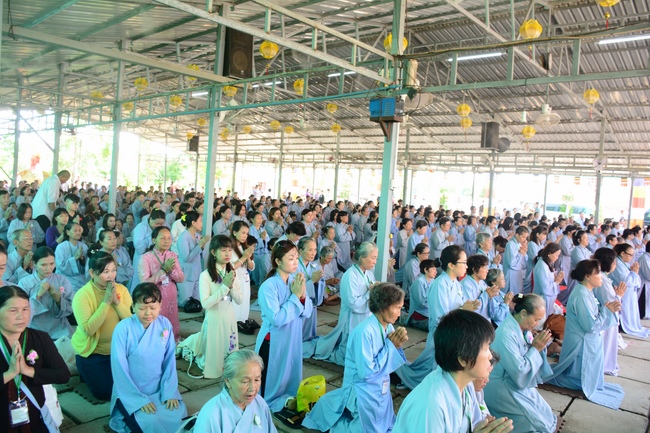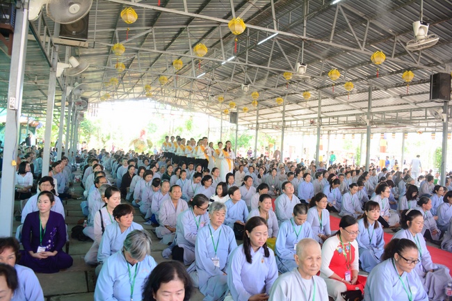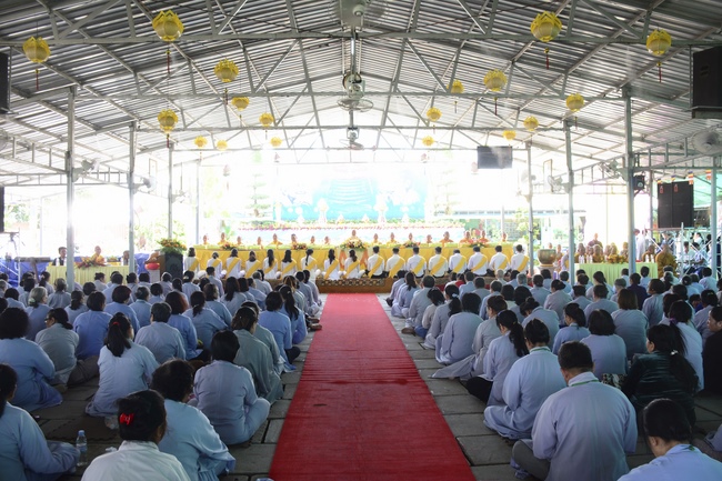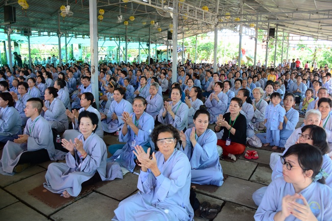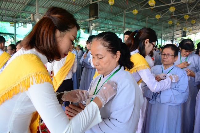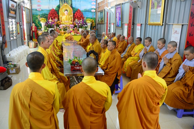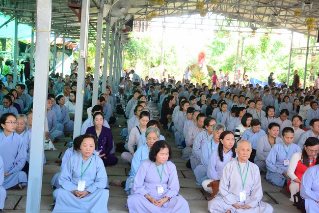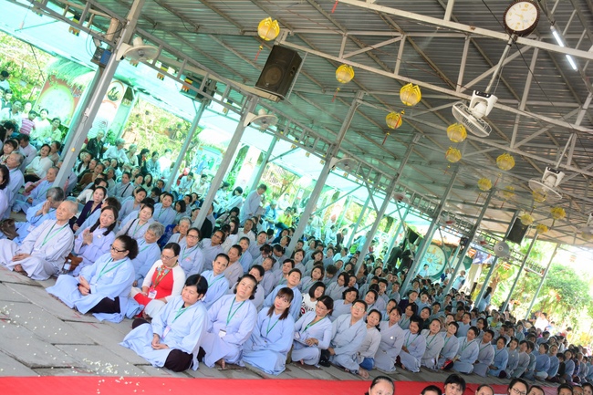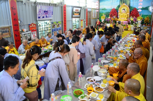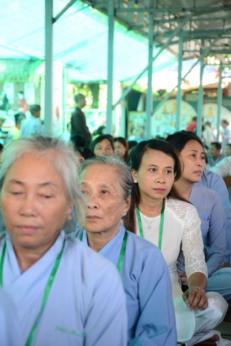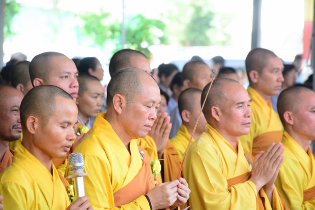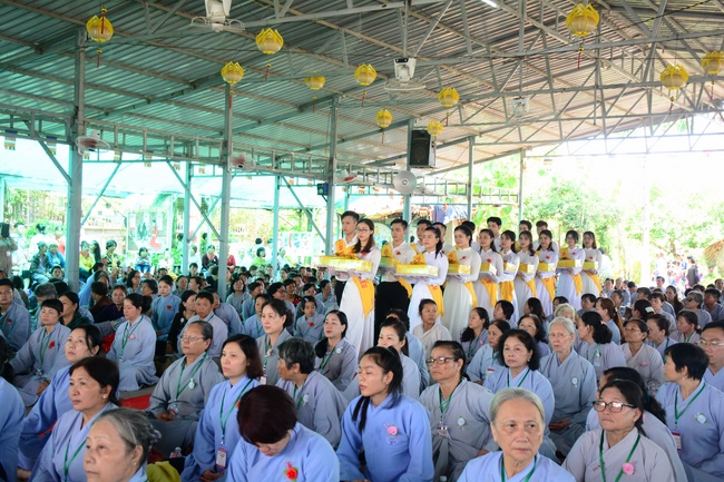 On Dharma preaching for the ceremony, Senior Ven. Thich Chan Tinh, Abbot of Hoang Phap, on behalf of current Sanghas, praised the spirit of all mass’d behavior and mind and accepted the alms.