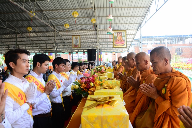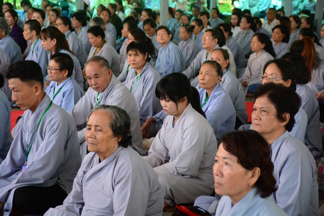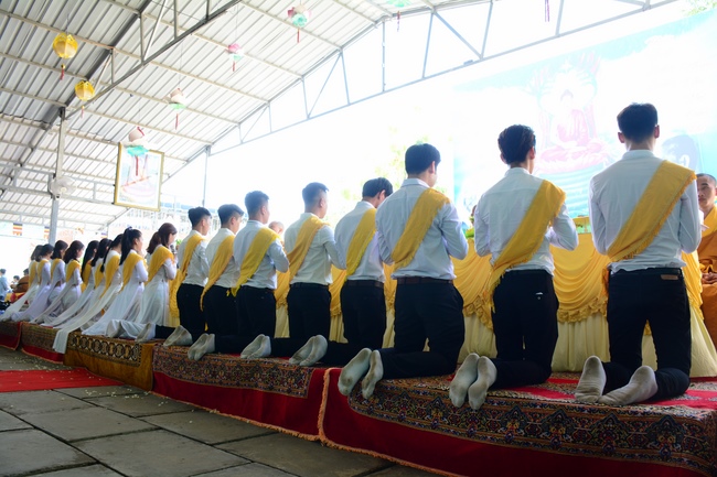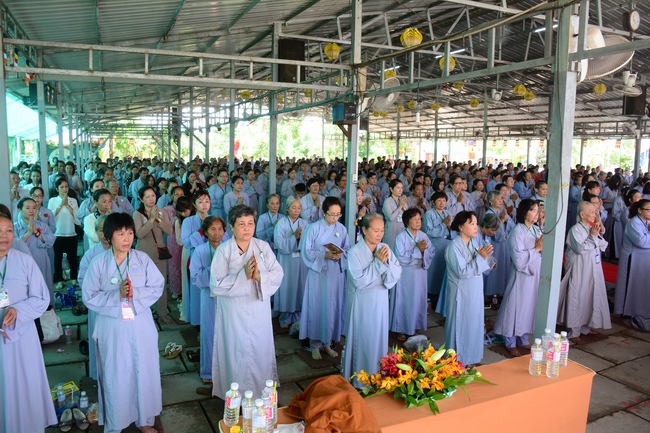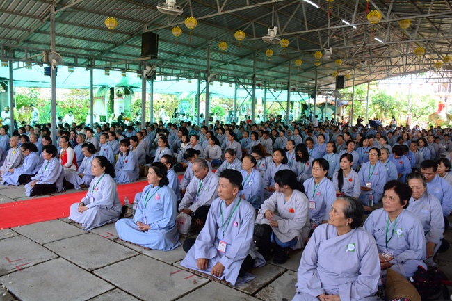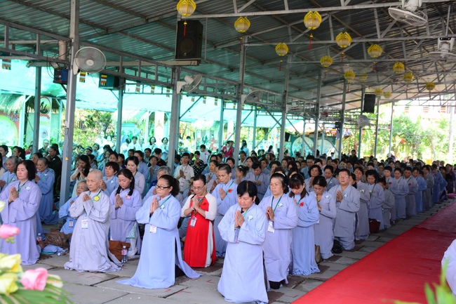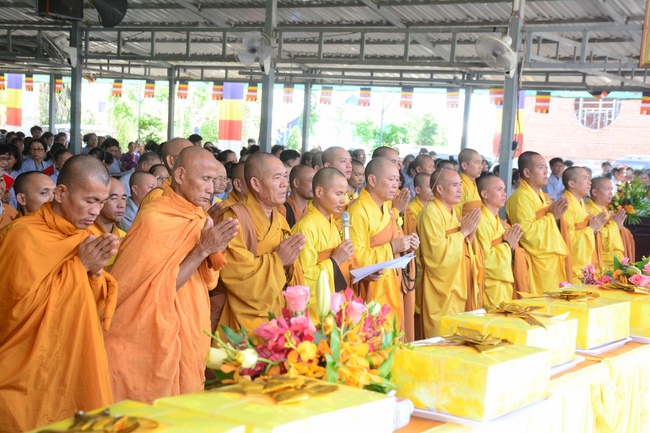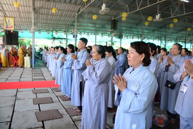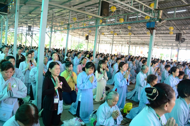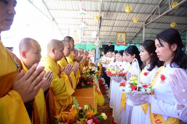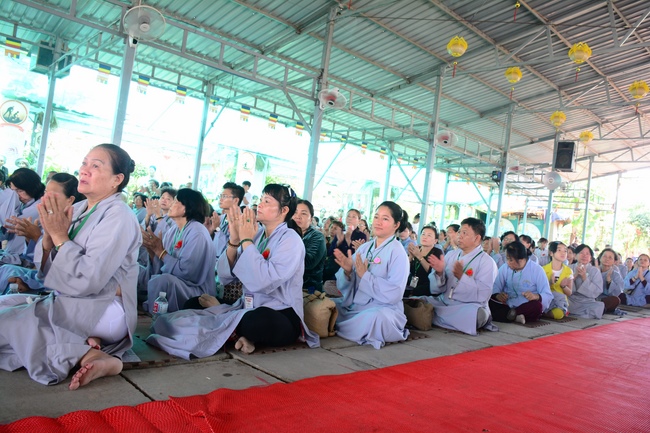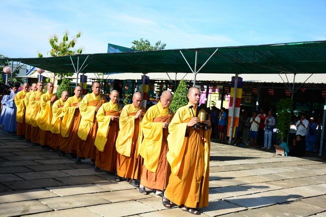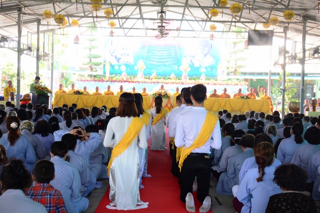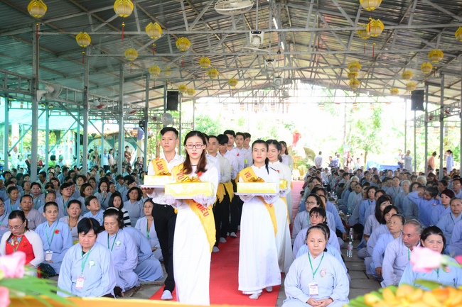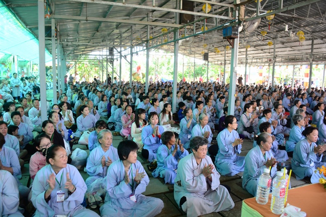 On Dharma preaching for the ceremony, Senior Ven. Thich Chan Tinh, Abbot of Hoang Phap, on behalf of current Sanghas, praised the spirit of all mass’d behavior and mind and accepted the alms.