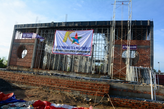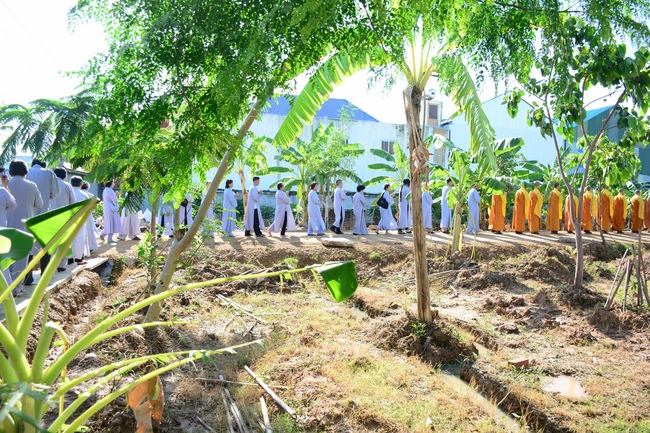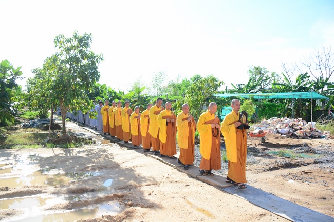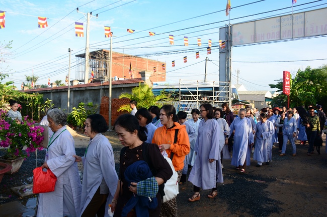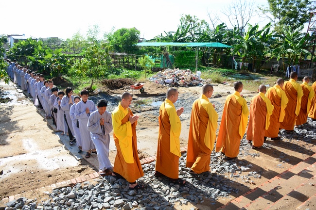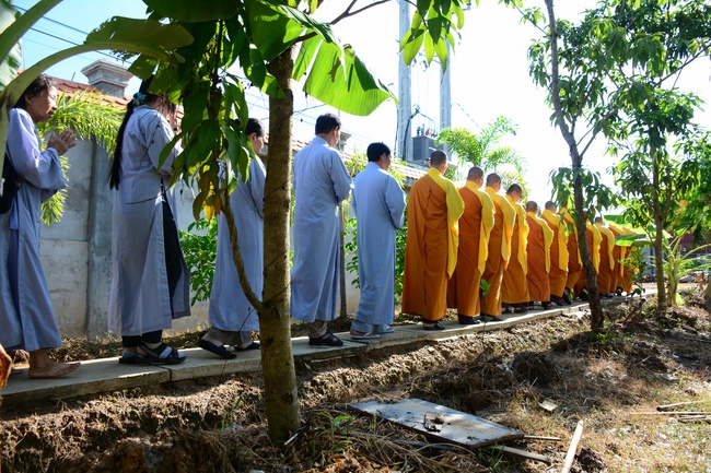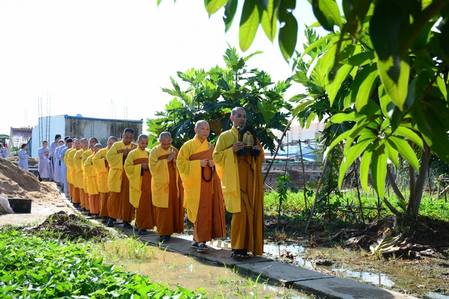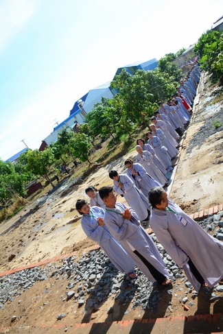 Before beginning the ceremony, Senior Ven. Thich Chan Tinh, Monks, Buddhists organized for reciting the Buddha’s name, meditation walking around the constructive project of main hall and the line of class room which is being constructed. The mass sincerely worshiped the Triratna’s great support, so that the construction will be soon finished. Hoping the monks and Buddhists Vietnamese, who are living in Cambodia, quickly have a solemn and pure pagoda for their cultivated refuges.