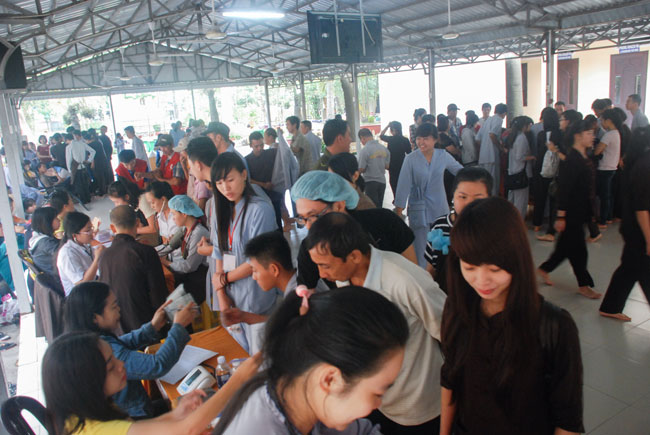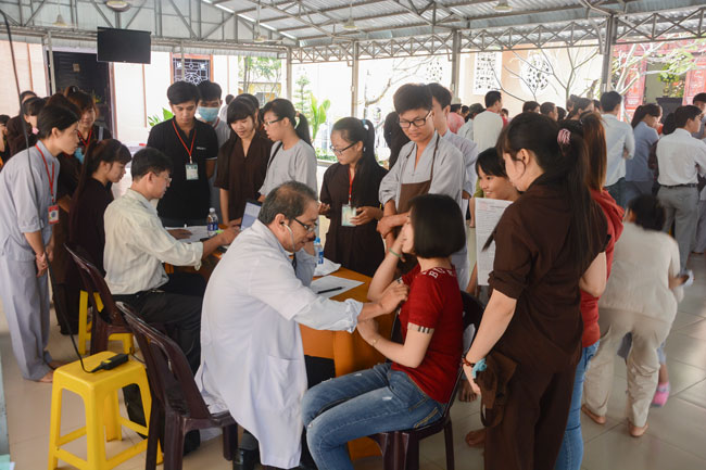 From the early morning, the monks and Buddhists had gathered\r\nand thoroughly prepared for this activity with the joyful atmosphere before the\r\nteam of doctors arrived. All of the participants hoped that their\r\ndonations could help patients get over serious illness. Therefore, the bright\r\nsmile of volunteers grew all the time and the spirit of compassion, benevolence\r\nwas spreading out during the activities.