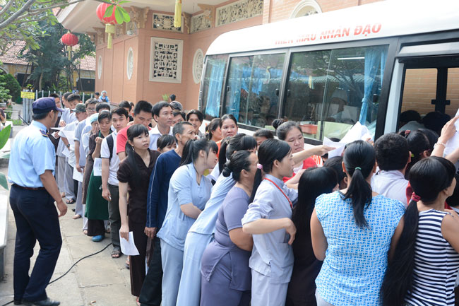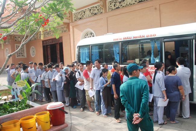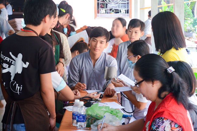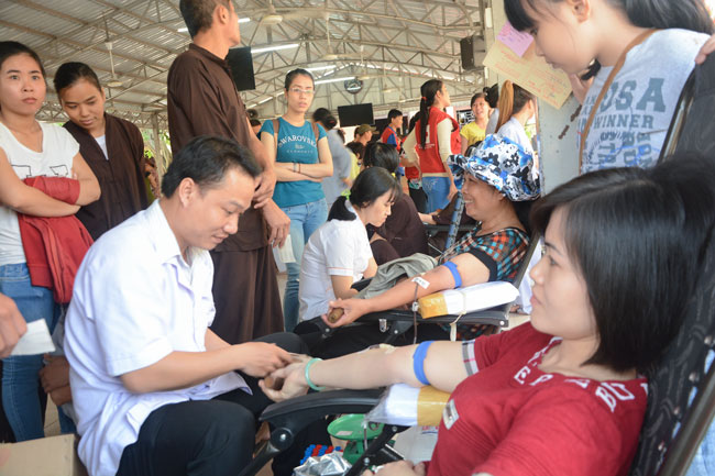 In the morning of January 11th, 2015 ( lunar November 21st, Horse Year) the Hoang Phap pagoda together with the Red Cross in Tan Hiep, Hoc Mon district, Ho Chi Minh city held the Humanitarian Blood Donation day for the benefit of our community as well as the loving kindness of the Buddhists.