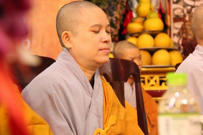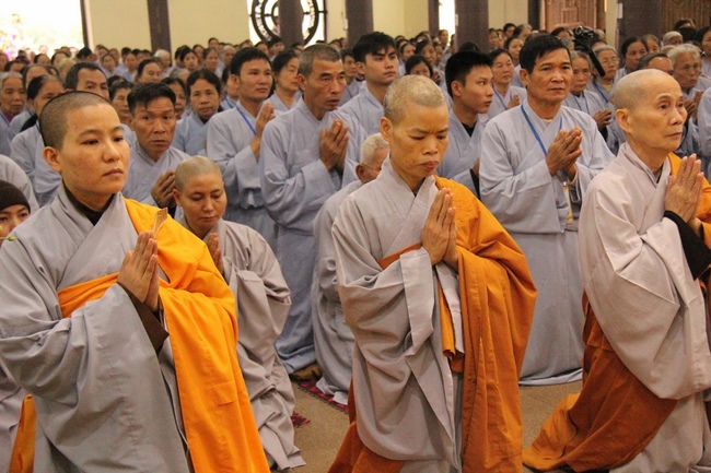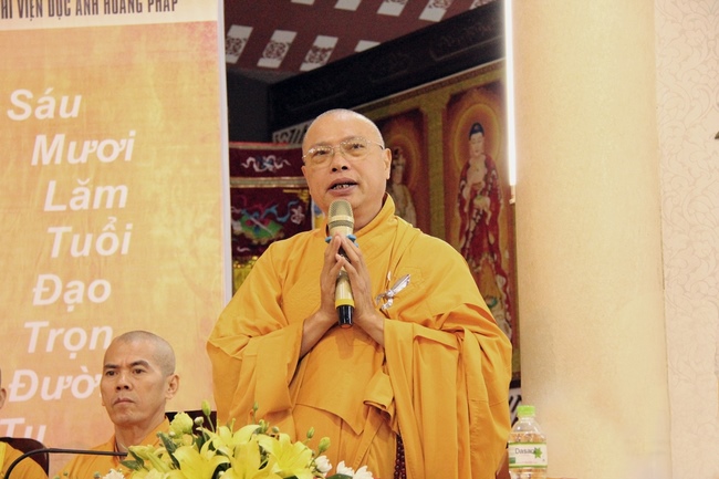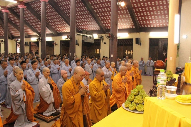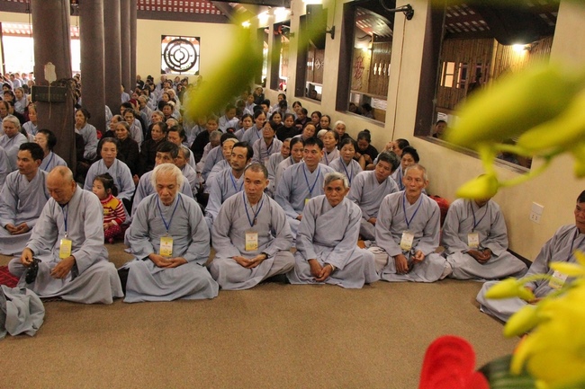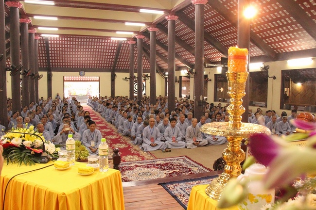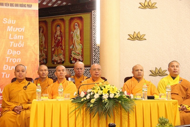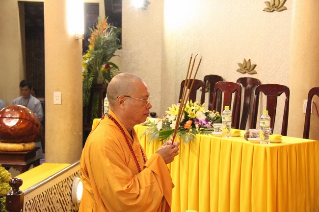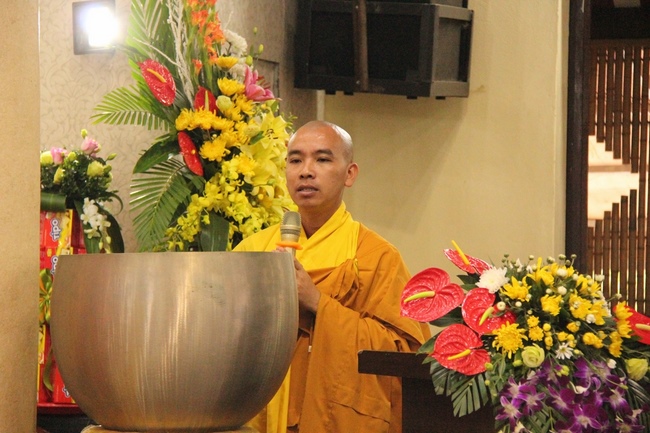 Before ending the ceremony, Junior Ven Thich Tam Hoa had some Dharma talk to Buddhists. He explained how to practise cultivation path rightly, without any competition or conflict, and not to give up Tathagata’s Dharma about section of ‘a tree trunk drown’: neither drifting on right shore nor left shore, neither being aground, nor being hooked. To do this, all of Buddhists have to keep right mindfulness for the body, the mouth, the thinking. And most important as Buddha’s advice, Buddhists should always practise contemplation of the body and mind and meditate on Buddha’s teaching, here and now.