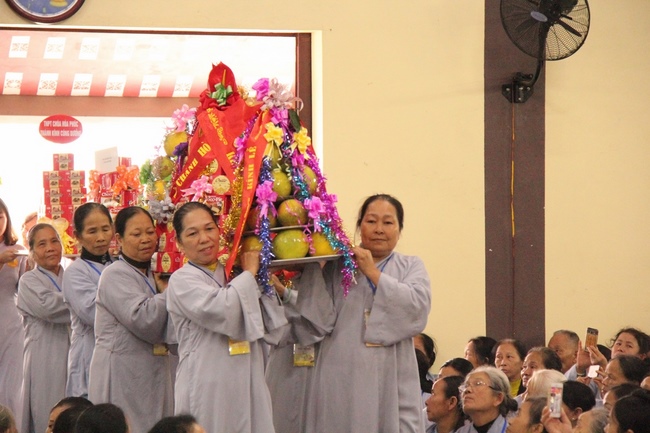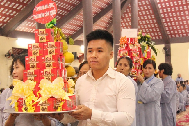 Following the program of the ceremony, 14 Buddhist groups of Hoa Phuc Pagoda’s Bodhimandala and the pious class, Buddhist youngsters appraised offering to the soul of the Patriarch. Returning to Hoa Phuc pagoda on the anniversary of the Patriarch’s death, on behalf of practitioners Senior Ven Thich Thanh Giac talked to Buddhists about meaningful stories of the Master’s propagation and His achievements that the disciples have never heard. Being proud of later generation of Brahmacarya Monk, after Senior Ven Thanh Giac’s talk, all of child of Dharma and Buddhists who were present at the ceremony were more proud of Him. They took Patriarch’s action and vowed as the guideline for their learning path.