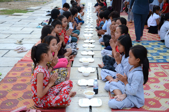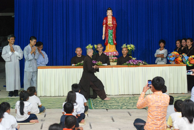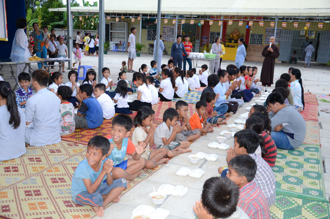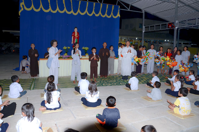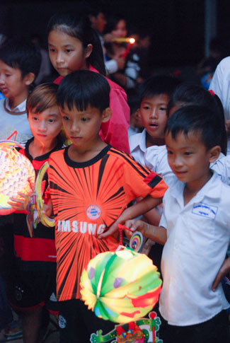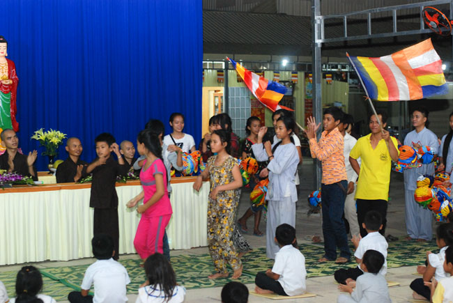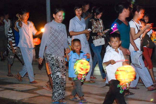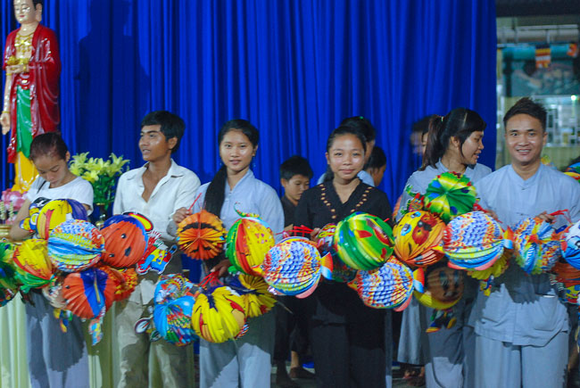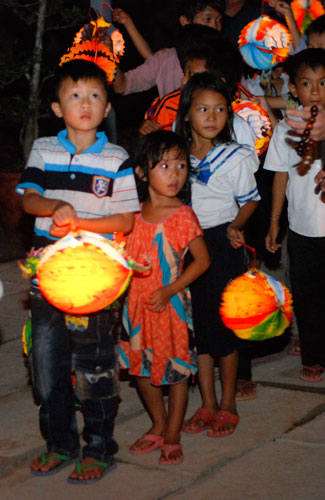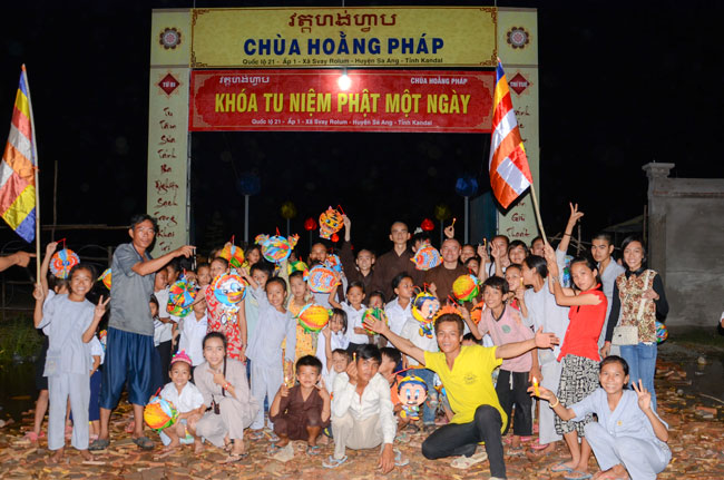 Understanding the Vietnamese feeling in Cambodia, on 7th\r\nSeptember 2014 (14th August in Horse Year), Senior Venerable Thich Tam Truc,\r\nwho is the Abbot of Hoang Phap Pagoda in Cambodia, decided to organize a\r\nmid-autumn festival evening for more than 100 children and residents there.\r\nThis first time Vietnamese children in Cambodia were able to participate in\r\nsuch a mid-autumn festival. Those smiles, laughs appeared on childrens faces\r\nand the calls they made whenever someones lantern was turned off, which\r\nreminds me and their parents of the homeland’s reminiscence. What a\r\njubilant happiness for parents because children were finally able to know the\r\nfeeling of mid-autumn festival- a traditional Vietnamese festival. One of the\r\nparents said: "To tell you the truth, this is the first time I\r\nhavent joined the mid-autumn festival since I moved to Cambodia for 30 years.\r\nI really feel happy and cozy and I do hope that Hoang Phap Pagoda would\r\ncelebrate this festival annually."