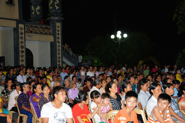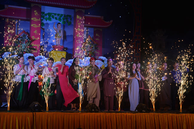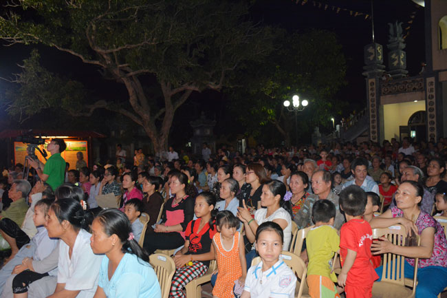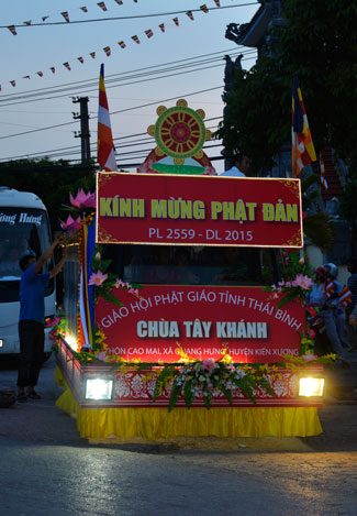 To praise the virtues of the Buddha and sing the songs on\r\nhis birthday everywhere, In the evening of May 29th, 2015 (April, 12th , Goat\r\nyear) at Tay Khanh Pagoda, Cao Mai hamlet, Quang Hung commune, Kien Xuong\r\ndistrict, Thai Binh province a night performance was held in order to welcome\r\nthe Vesak festival. It attracted many Buddhists inside and outside the district\r\nas well as the followers of other religions to the show.