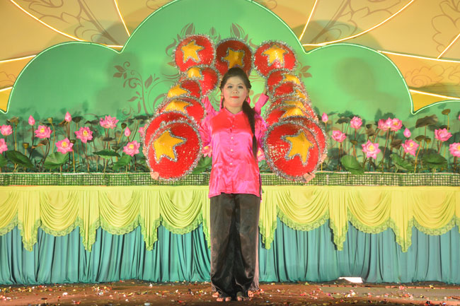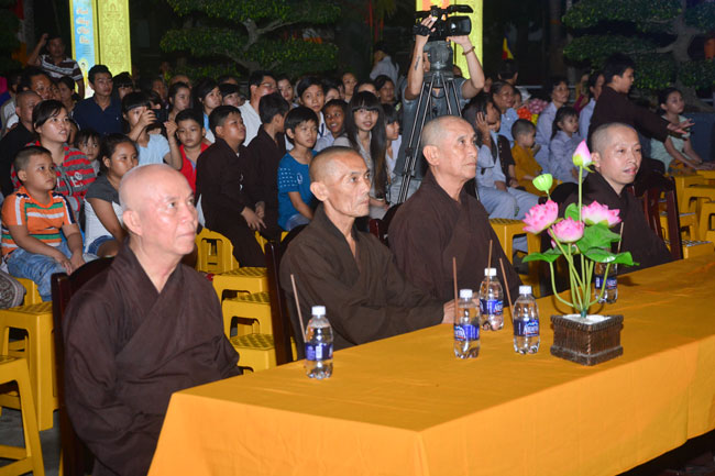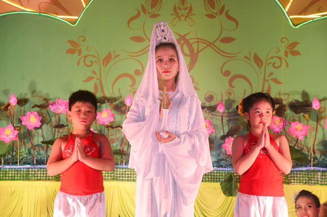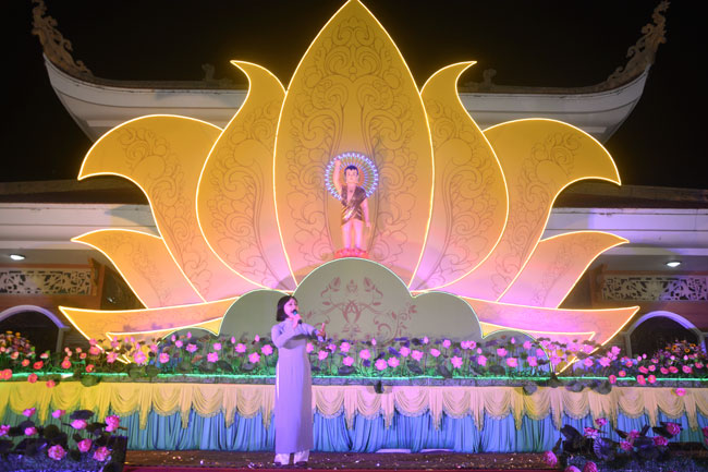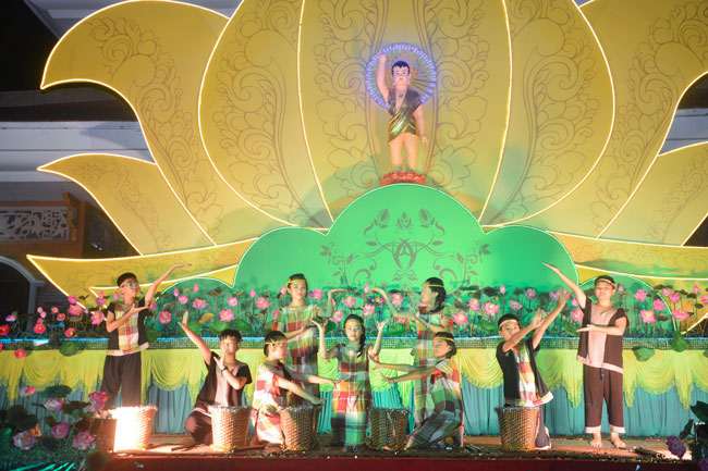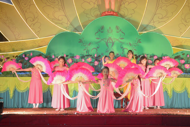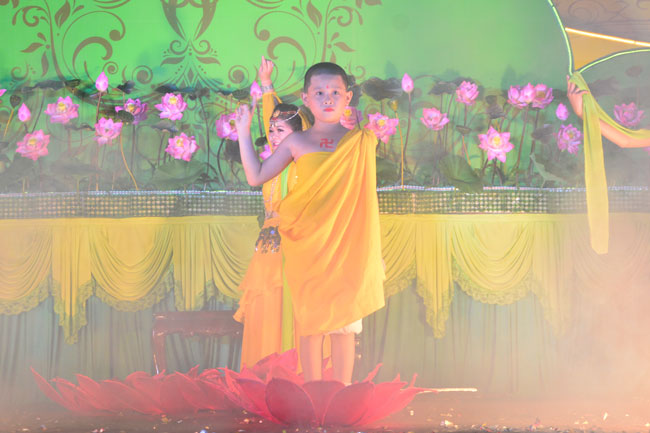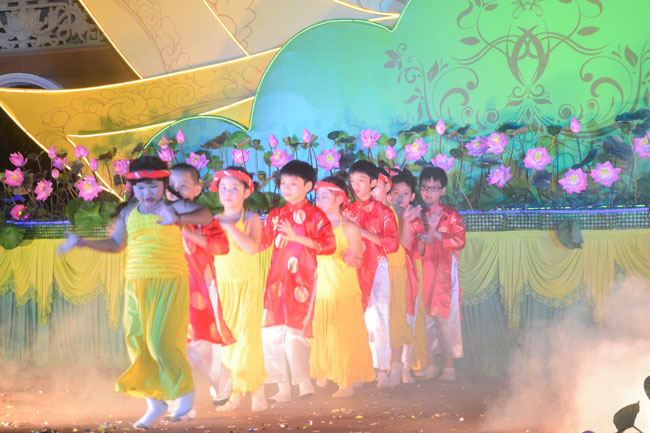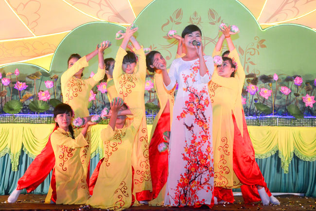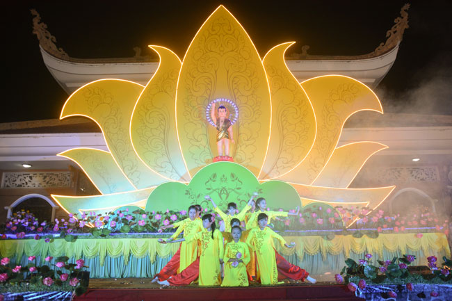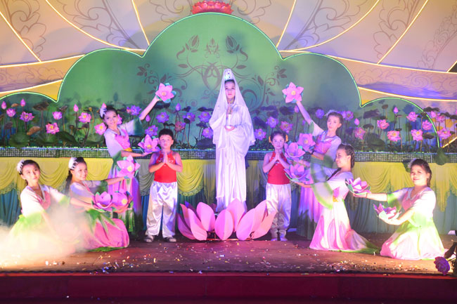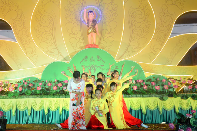 In the series of activities to celebrate The Vesak, in the evening of June 2nd, 2015 (April 16th, Goat Year), the performance to welcome The Buddha"s birthday was given in Hoang Phap Pagoda by the members of Buddhist Youth Association.