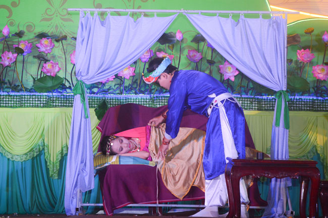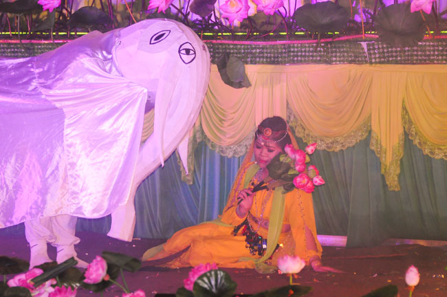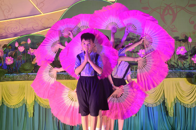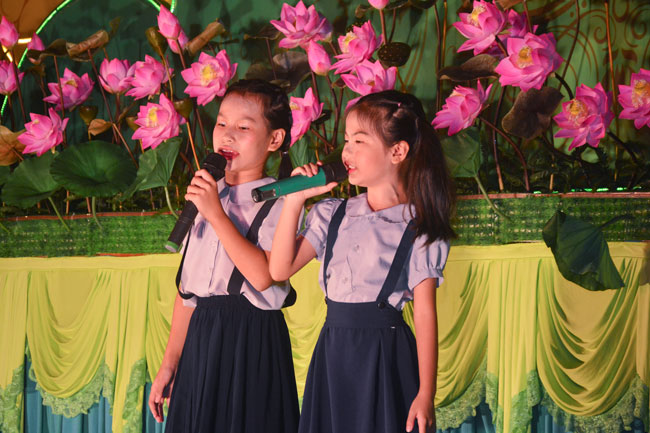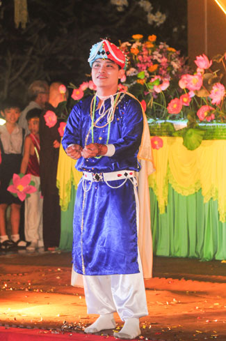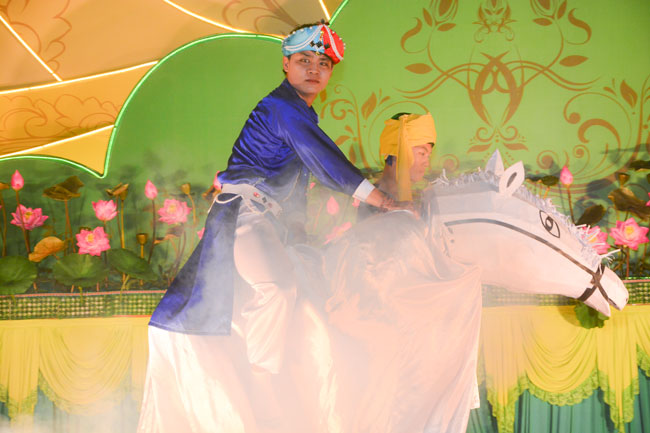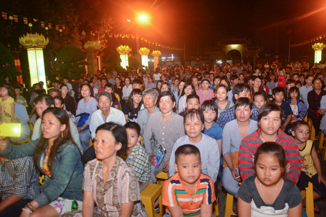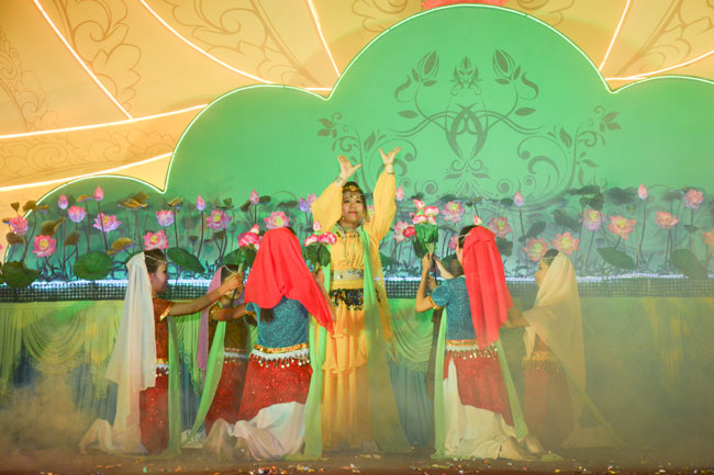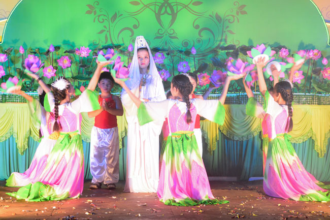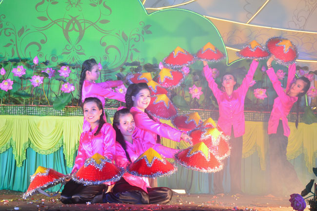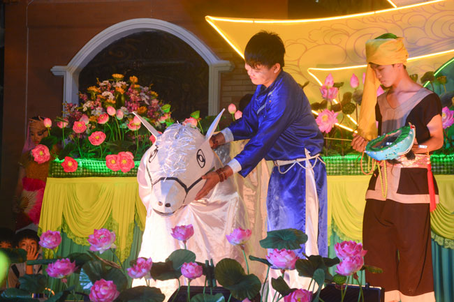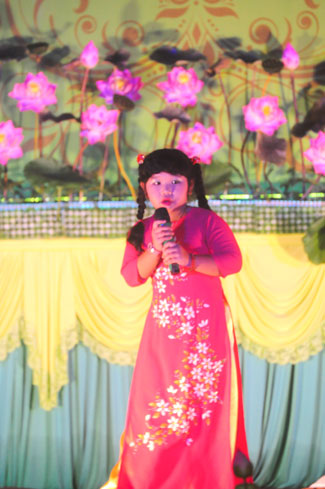 In the series of activities to celebrate The Vesak, in the evening of June 2nd, 2015 (April 16th, Goat Year), the performance to welcome The Buddha"s birthday was given in Hoang Phap Pagoda by the members of Buddhist Youth Association.
