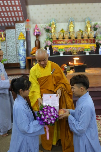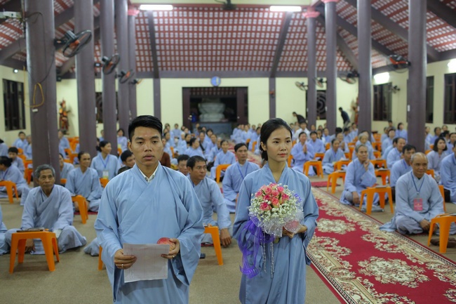 Then, the couple and the others listened to him explaining marital moral principles in Sigalovada Sutra (High Birth Sutra). He advised that the young couple have to fulfill duties; get belief on The Three Jewels as fulcrum for marriage life; cultivate together and build Buddhist family; practice Right Dharma.