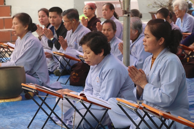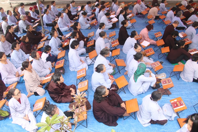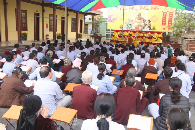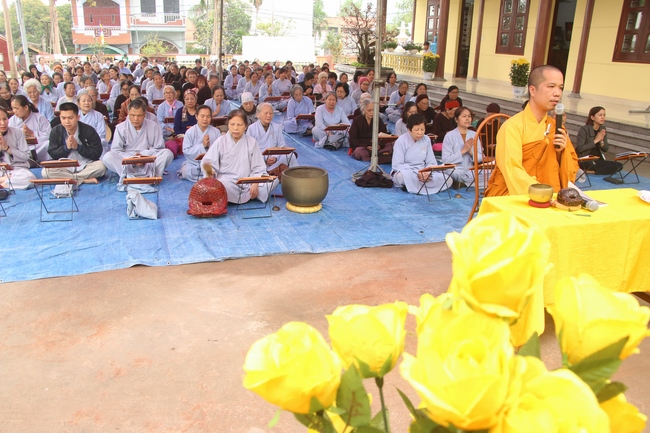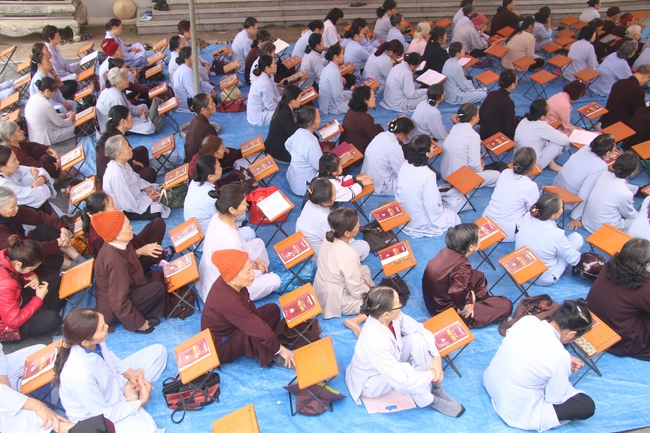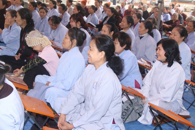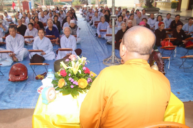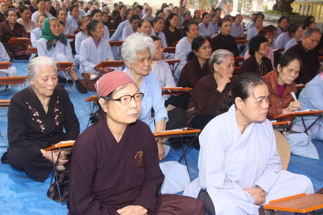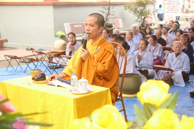 On this occasion, Senior Ven. Thich Dao Hien, a committee of the demonstrating council of the Central of Buddhist Sangha of Vietnam, Vice President of Vietnamese Buddhism Institute in Ha Noi, Vice Chief Board and holding the main secretary of the director board which belongs to Buddhist Sangha of Vietnam in Quang Ninh province, who preached to the theme “Almsgiving is One of captuhsamgraha-vastu (Four all-embracing virtues)”. The Senior Ven. preached that a sincere Budhhdist who have to deeply believe in cause and effect law.