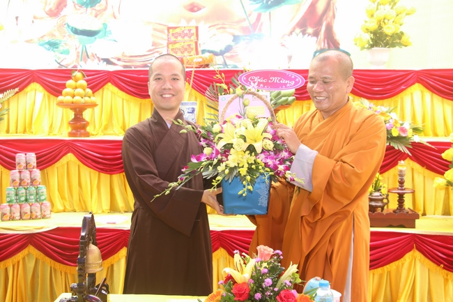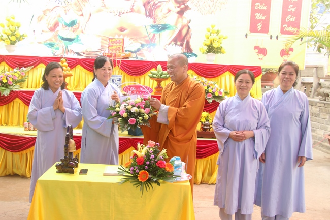 In the end, Junior Ven. Thich Tam Tinh, committee of Director Board of Vietnamese Buddhism Associastion in Quang Nam, Abbot of TieuDao pagoda and all Buddhists had a flower basket and a gift for congratulation to Senior Ven. Thich Dao Hien who was elected a member of the demonstrating council of the Central of Buddhist Sangha of Vietnam, and Vice President of Vietnamese Buddhism Institute in Ha Noi.