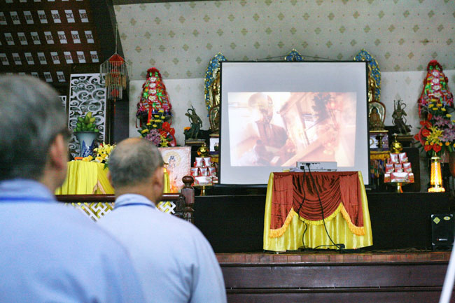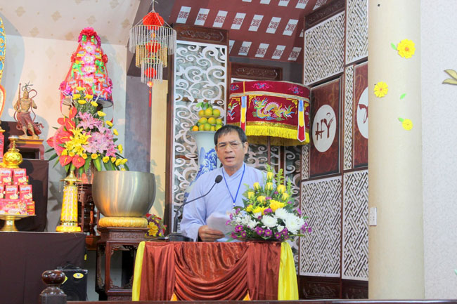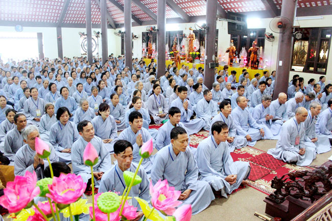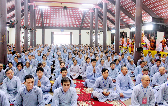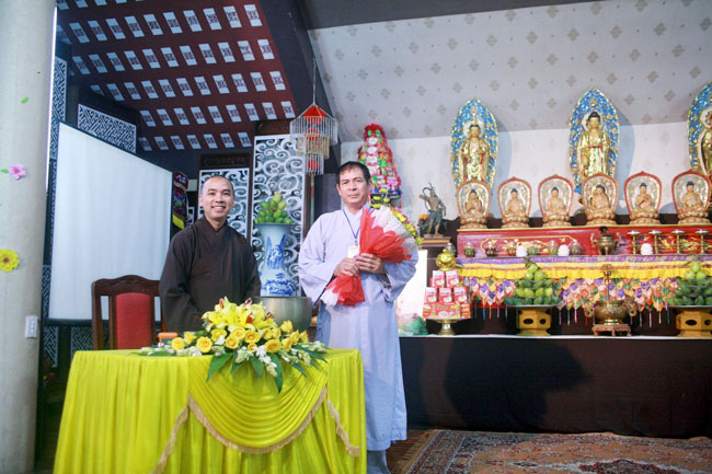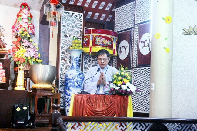 In this Dharma talks, buddhitsts in the bodhimandala have been exchanged relation directly with Nguyen Thai Quang buddhist (his buddha name is Tinh Quang), the main character in program "Dharma saves my life - time 1". Tinh Quang buddhist is a man who used to have the dark past ; when he was young who was lived in the army background but he engulfed in bad habits, being addicted to drinks; he always opposed regulations which caused bad influence on his army unit. Not only that, Tinh Quang buddhist spoke loudly and scuffled with his superior officers as well as his teammates in many times which caused the regretable consequences, having been detained temporarily in many days. After leaving the army , with self-conceited ego together with formerly bad habits, Tinh Quang buddhist has turned himself into a wine worm, he always beat and abused his wife and children, smashing his home and immersing himself in the leaven of sin. He beat his wife to the hospital in many times, holding a knife to cut and kill someone who was contrary to his opinion. But it is due to have causes and conditions with Buddha law in previous life, Tinh Quang buddhist has awakened after a long stupidity, knowing to turn and rely on Three Refuges, cultivating and being transformed his mind and body, creating many blessings to become a sincere buddhist, a symbolic example for practice in bodhimandala of Hoa Phuc pagoda. Tinh Quang buddhist has gradually abandoned evils in the past, the dark images of Thai Quang are changed by the image of an exemplary father and husband in his family, a factor who contributes to building a society became better. In front of aquilaria scent which spreads in the sacred Tripple Gem, Tinh Quang buddhist has offered his vows, from now on he always vows to respect and rely on Three Jewels, following the correct teachings to practice, sowing the green sprout for Dharma, wholehearted help those who are in the dark to have potentiality and conditions to see the light of Buddha law in order to live in the peaceful and more meaning dates.