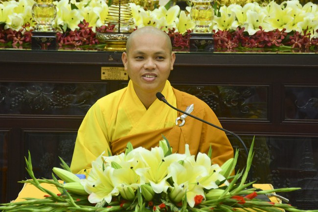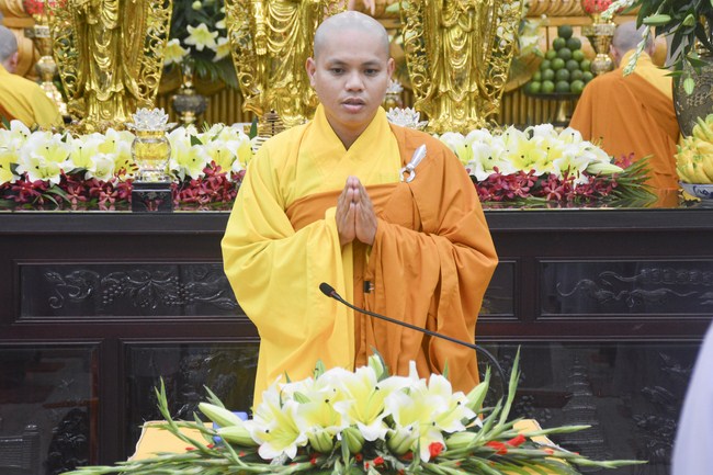 This time, Junior Venerable Thich Tam Quyen who is the Sangha of Hoang Phap pagoda had a speech to the mass before officially opening the ceremony with the theme of “Meaning of Offering to Triranaâ€.