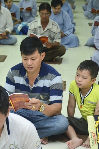 After his preaching, the mass began the repentant ceremony of six senses and chanting the Buddhists’ principles as usual.