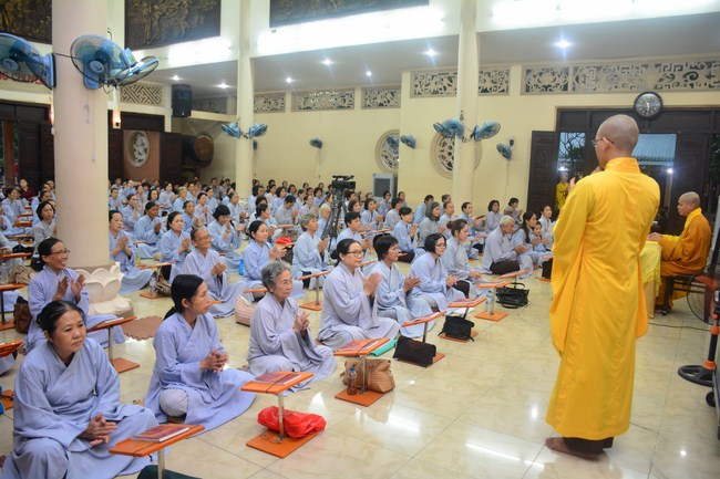 On his dharma talk, he told about the doctrine “Distinguishing of Offering†in Majjhima Nikaya sutra. The content of sutra mentioned to Mrs Maha Pajapati who had brought a new robe to offer the Buddha. Because of wanting she would get more blessing, the Buddha adviced bringing this one to offer the Sangha. However, she only wants to offer the Buddha.From this, the Buddha taught a dharma explaining about the offering’s meaning and method as well as teaching thefollowing genegations who would attain many blessings in their offering.