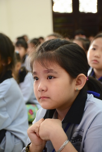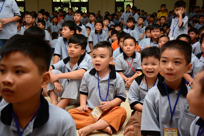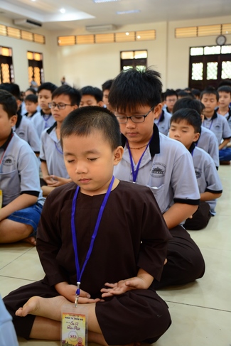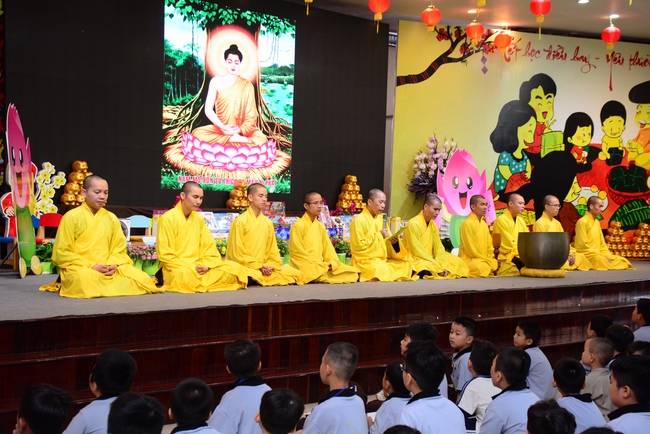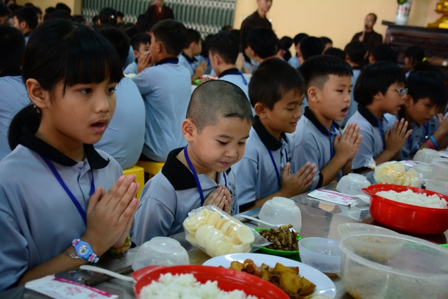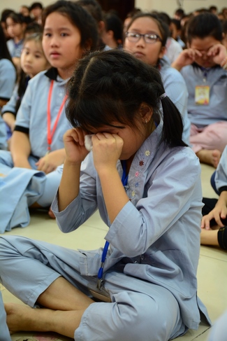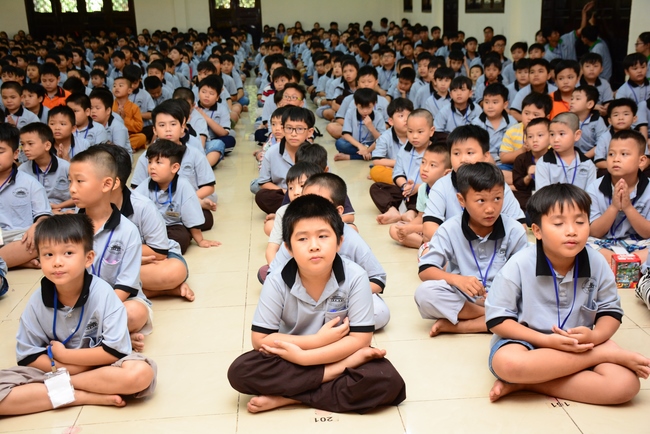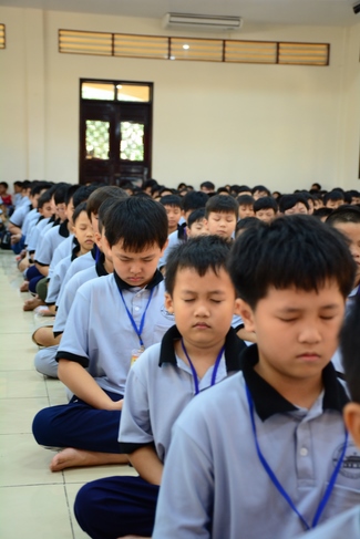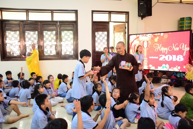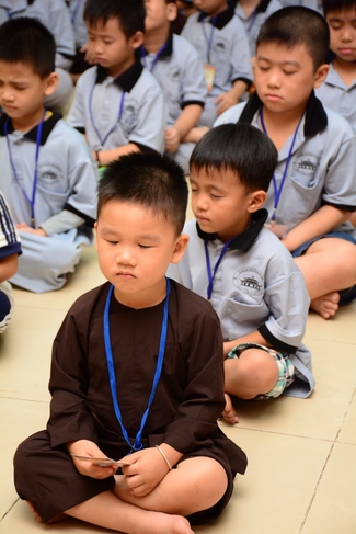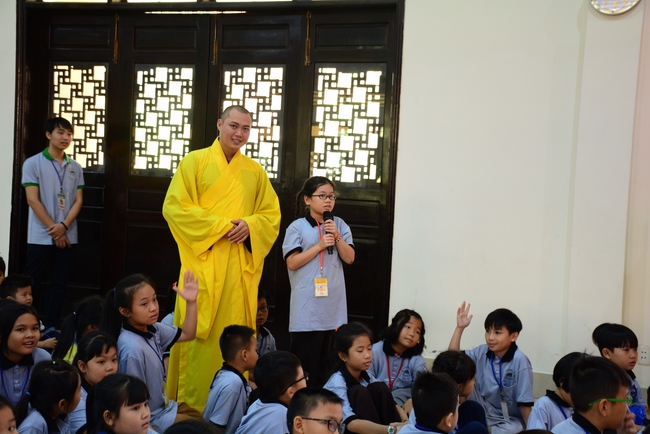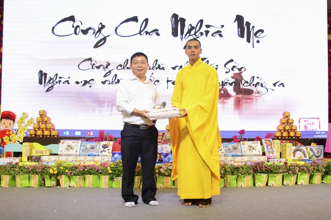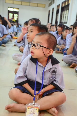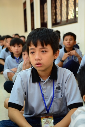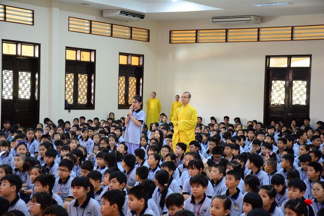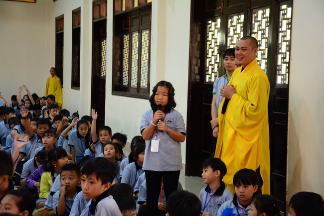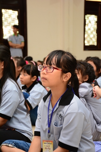 The afternoon of same day, the monks instructed them chanting the poem "Gratitude" and quietly sat meditation on some minutes. Teacher Nguyen Thanh Nhan (the Young Talent Training Center of Asian Pacific) had a speech about the compassion stories, the sacrifice of a mother in their movingand concentrating listening. Before returning home, each of them have received a gift from by organizers.