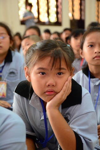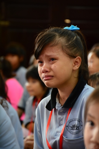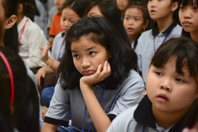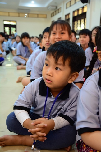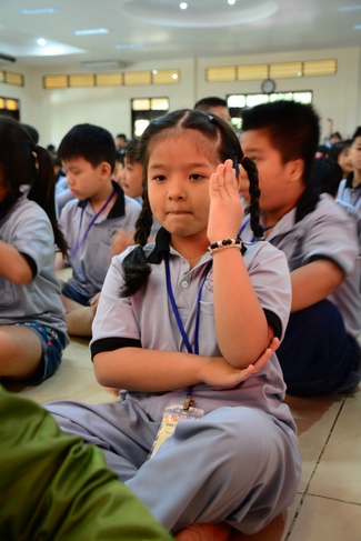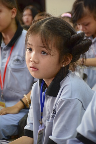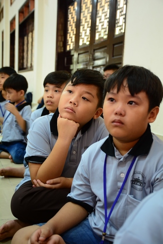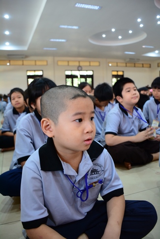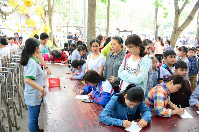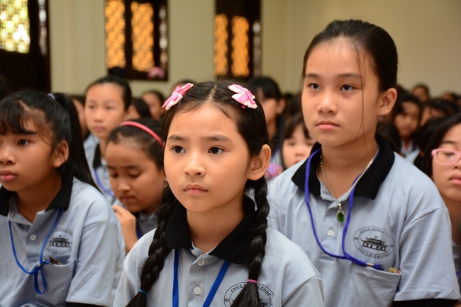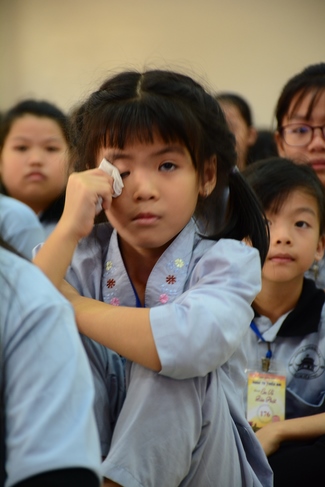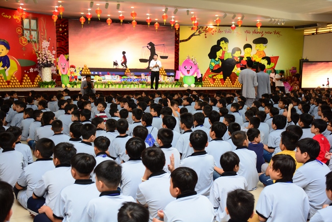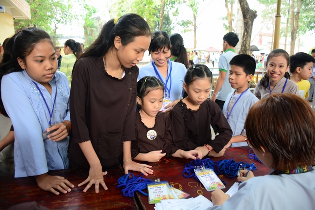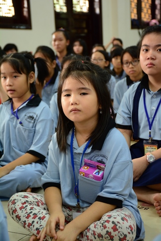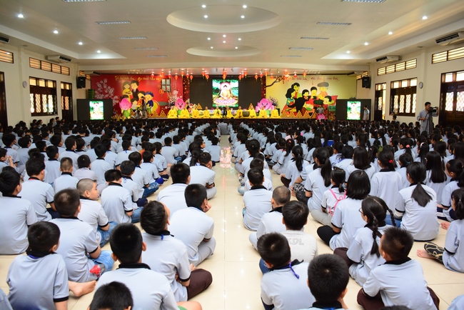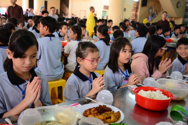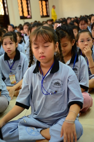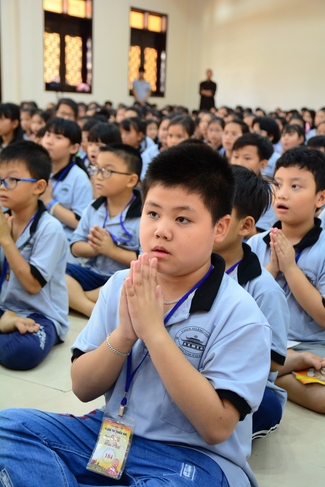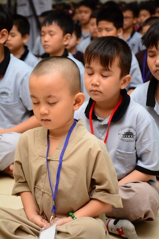 The afternoon of same day, the monks instructed them chanting the poem "Gratitude" and quietly sat meditation on some minutes. Teacher Nguyen Thanh Nhan (the Young Talent Training Center of Asian Pacific) had a speech about the compassion stories, the sacrifice of a mother in their movingand concentrating listening. Before returning home, each of them have received a gift from by organizers.