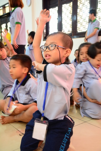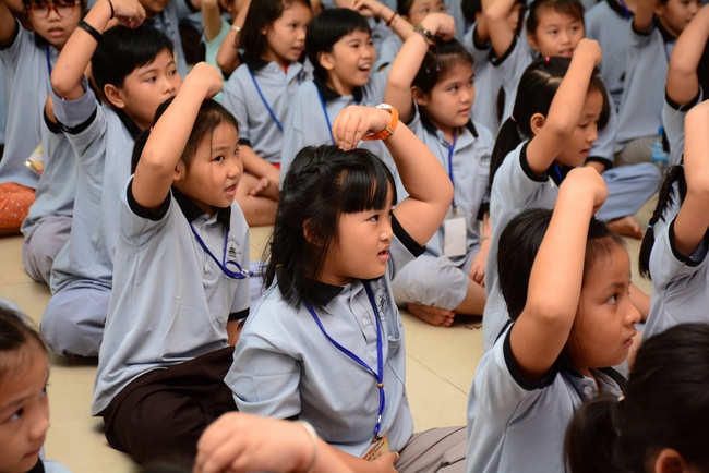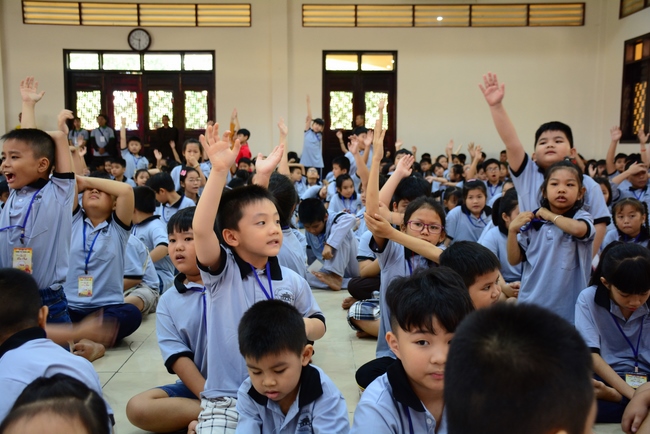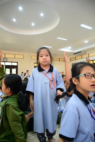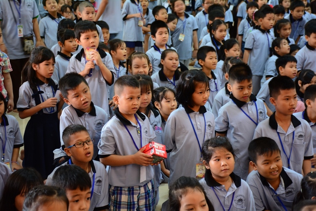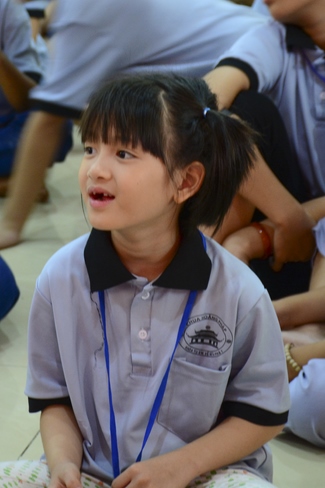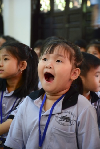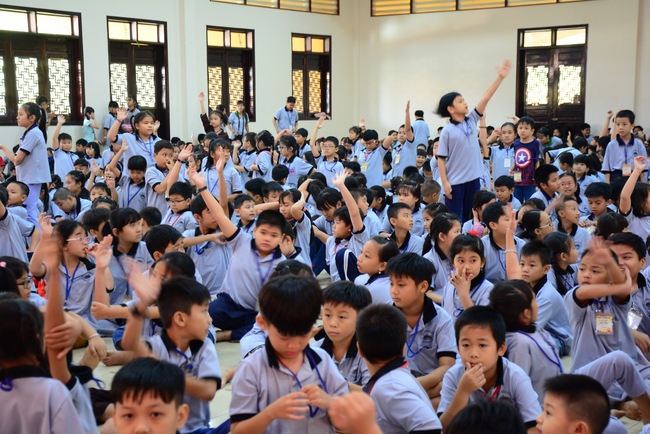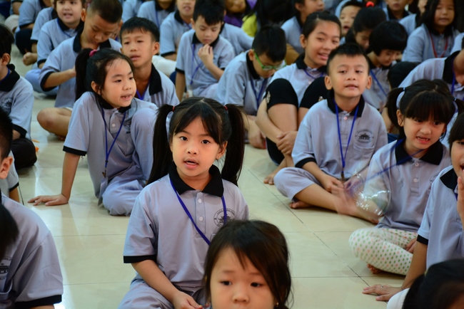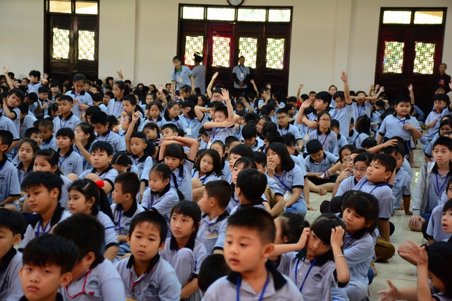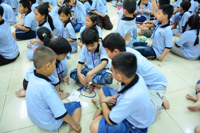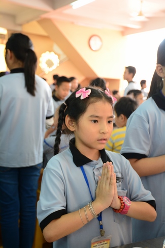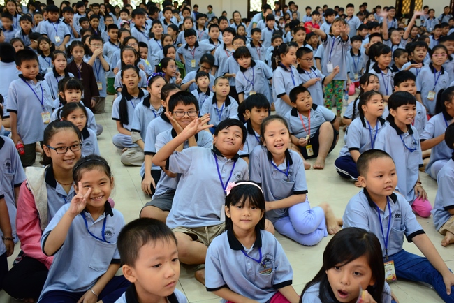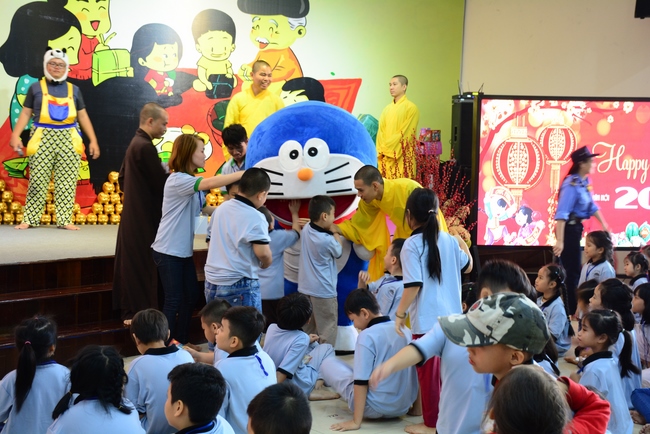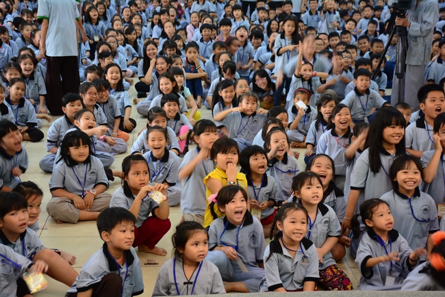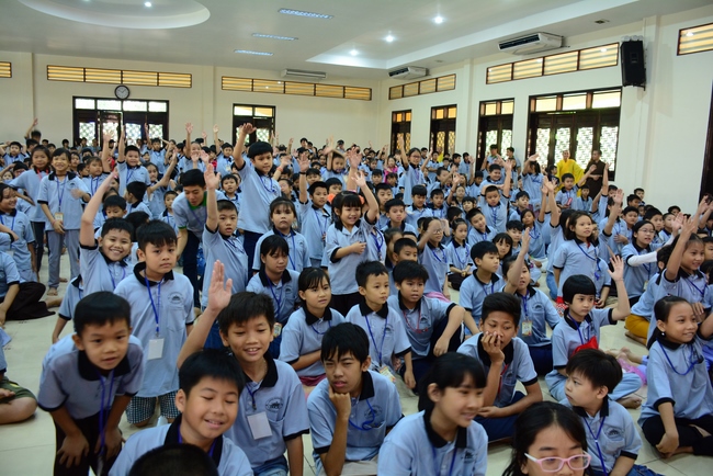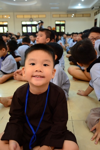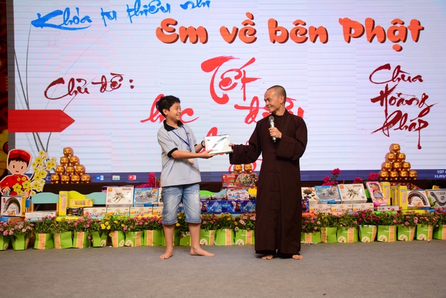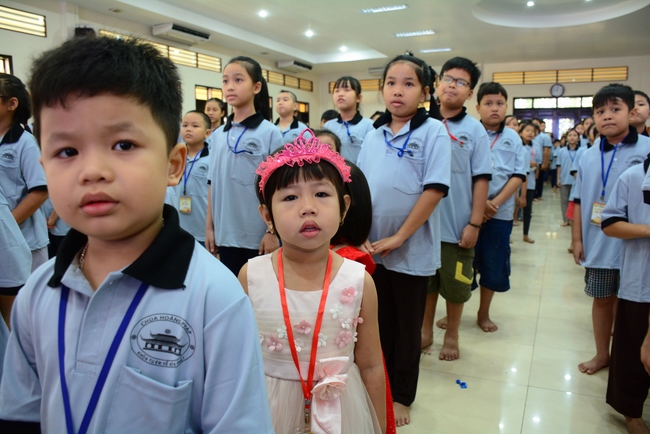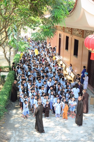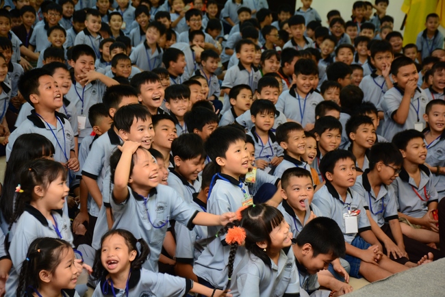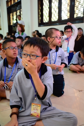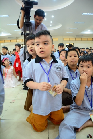 After register in the morning, the monks instructed all of them to the main lecture room for their activity and then they listened to a dharma talk by Senior Ven. Thich Chan Tinh, the Chief of organizers at the retreat. His speech was short of three paragraphs on the understandable and simple words in spite it transfers more deep meanings. Combining between learning ethics, playing activities and receiving gifts, etc, the children have had the impressive and lively lessons about moral, culture, and behavior which helps inscribe on their spirit.