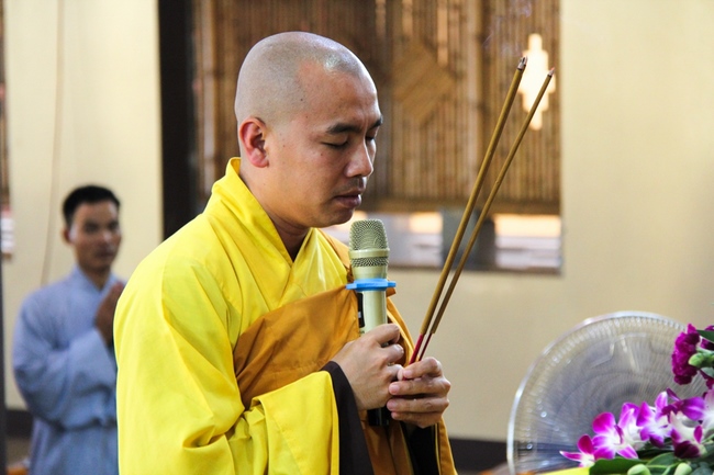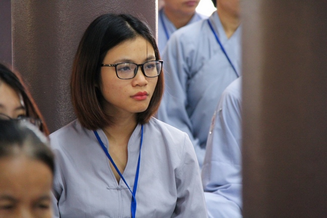 On this course, there are new appearances when it received the application for not only old people but also the young ones of pupils and students. At 2h P.M, all Buddhists welcomed Junior Ven. Thich Tam Hoa, the Abbot of Hoa Phuc pagoda, who came to main hall to offer incense toward the Buddha and transfer eight precepts.