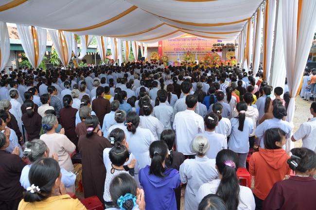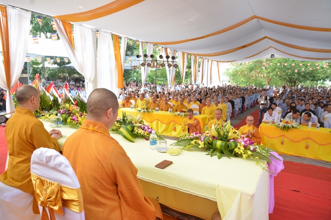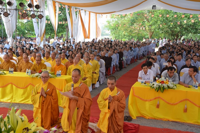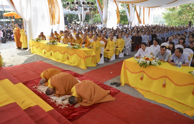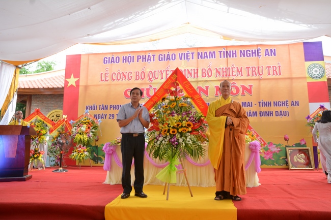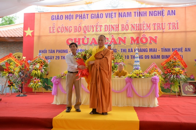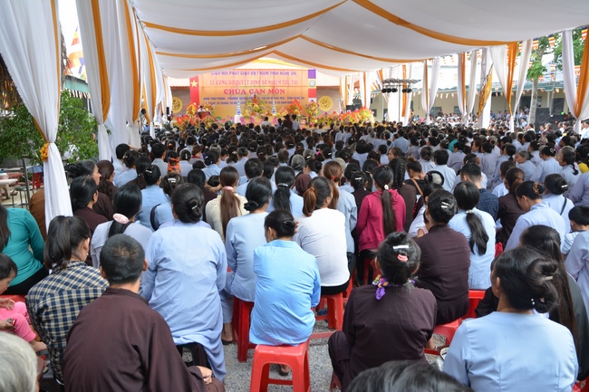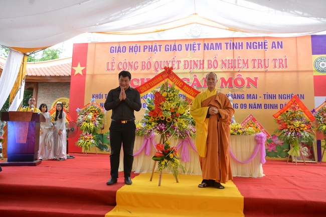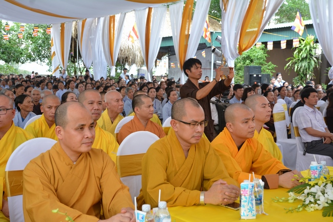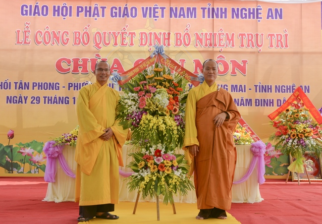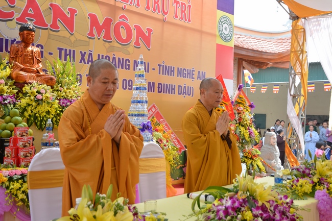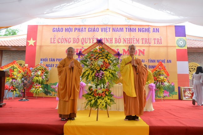 In the rite, there was appearance for witness of Senior Ven. Thich Lac Tho, the vice - chief of permanent board of the director board of Vietnam Buddhist Association in Nghe An Province, as well as Ven. Sanghas and all Buddhist followers belonging to inside and outside Nghe An Province.