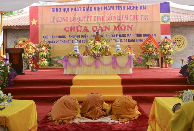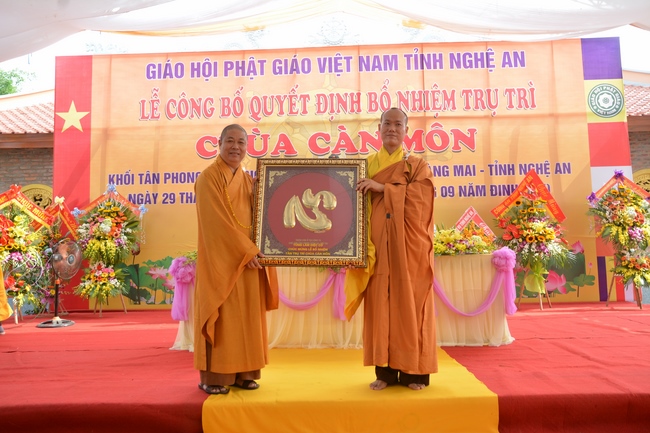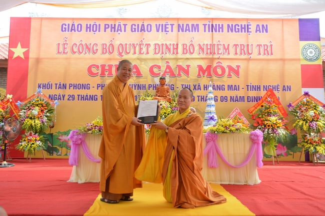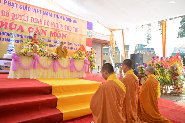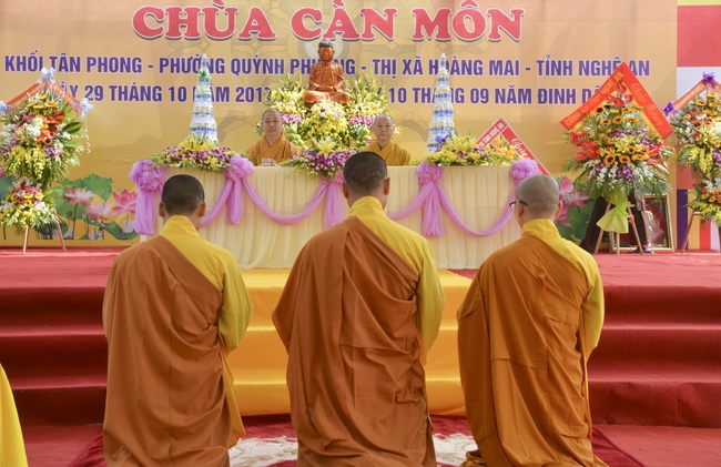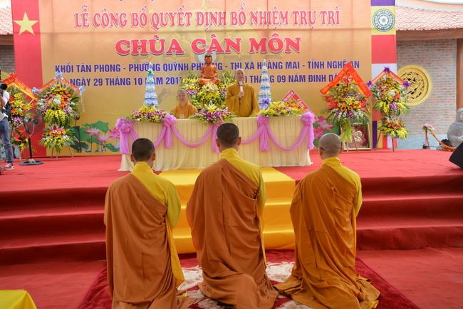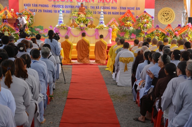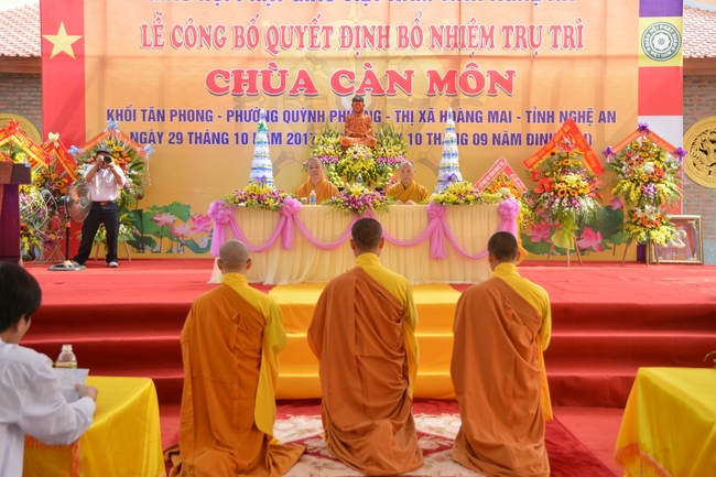 Witness and support for the assignment rite of appointing the abbot, Senior Ven. Thich Chan Tinh and the monks of Hoang Phap pagoda came to Can Mon pagoda (An Phap pagoda) on Oct. 29th, 2017 (lunar Sep. 10th, Rooster of Year) at Tan Phong Hamlet, Quynh Phuong Commune, Hoang Mai Town, Nghe An Province.