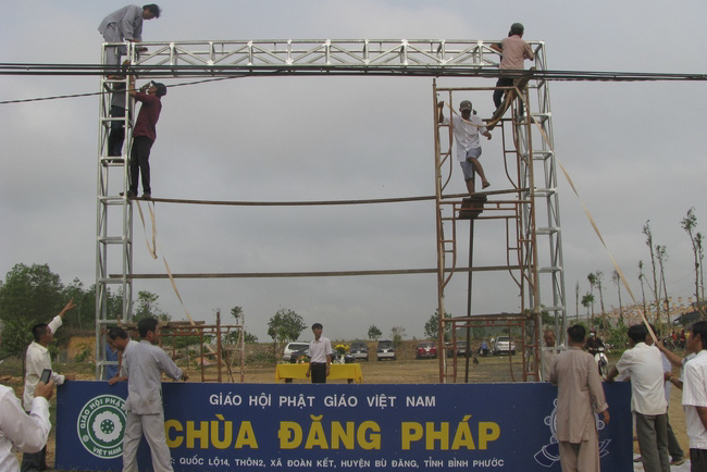 The Sign-Posting Ceremony of Dang Phap Pagoda Update: 05/03/2018 Được sự chấp thuận của chính quyền địa phương cho chùa Đăng Pháp đăng ký điểm sinh hoạt tôn giáo tạm thời, sáng ngày 02/03/ 2018 (nhằm ngày 15/01 Mậu Tuất). Exactly at 8:00 am, the ceremony starts with Buddhism rites. The pagoda sign is posted by the devoted male Buddhists. Then in solemn air, it is the rite of New-Year Praying for peace and ease to all beings. Following are recorded photographs: BBT Website Facebook Google Tweet News Category Related News Pagoda Charity Program “Means of Compassion” 16/12/2025 Freeing of creatures at Binh My ferry 14/12/2025 One - Day Practice at Dong Cao pagoda, Thanh Hoa 09/12/2025 The 70th Kid Playground 07/12/2025 Humanitarian Blood Donation 07/12/2025 View All The news was posted: View posted in this day Posted to this date