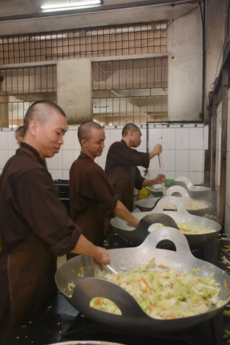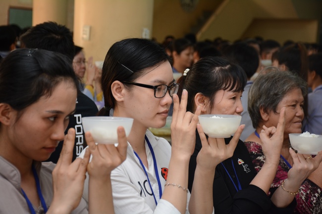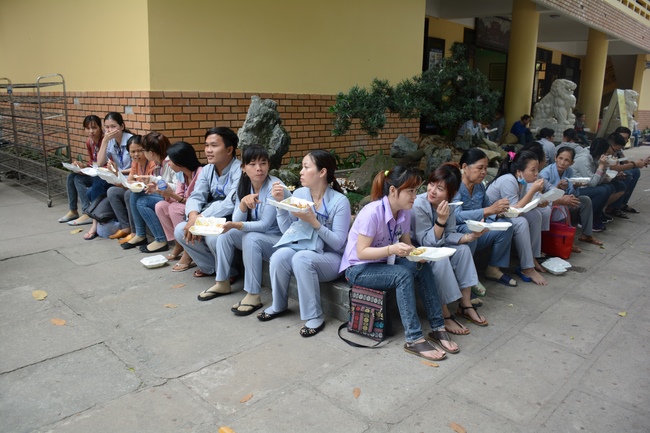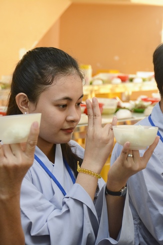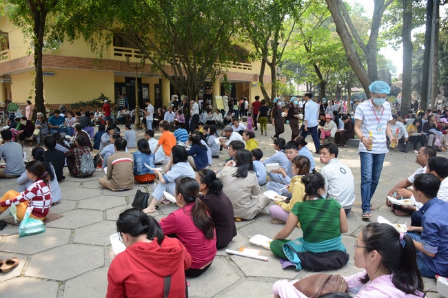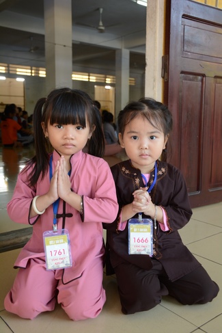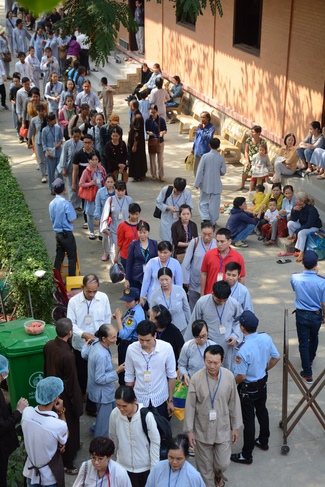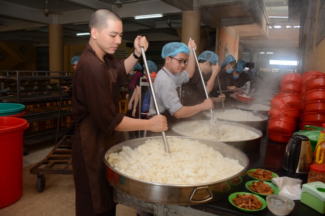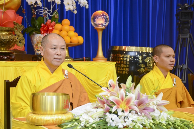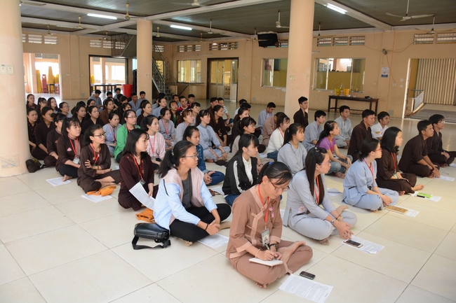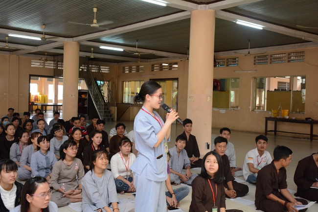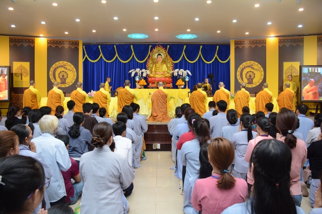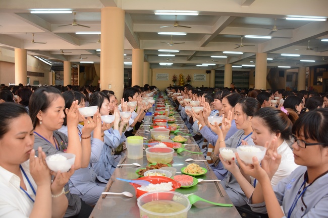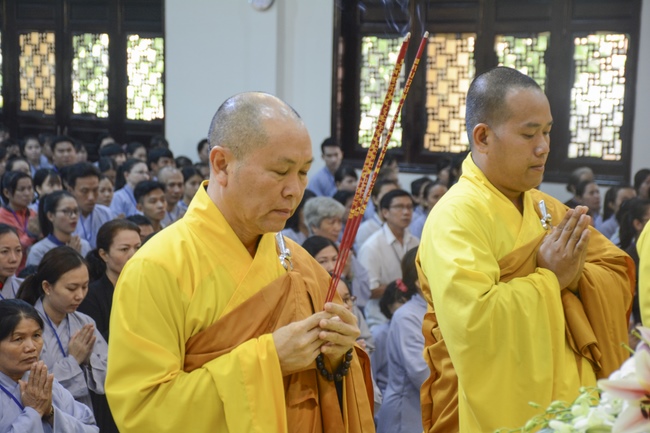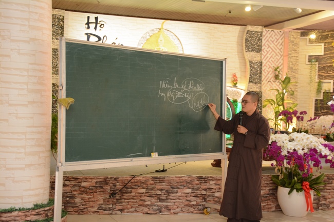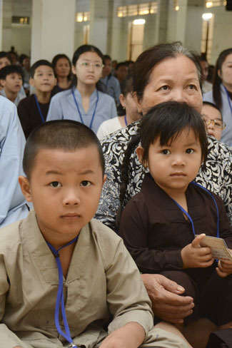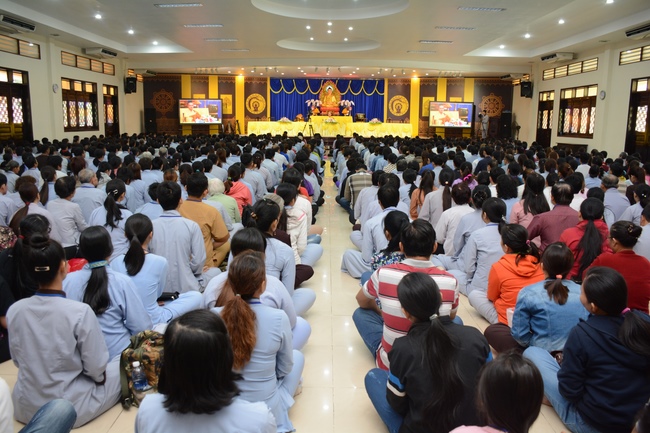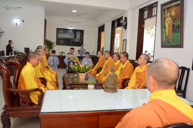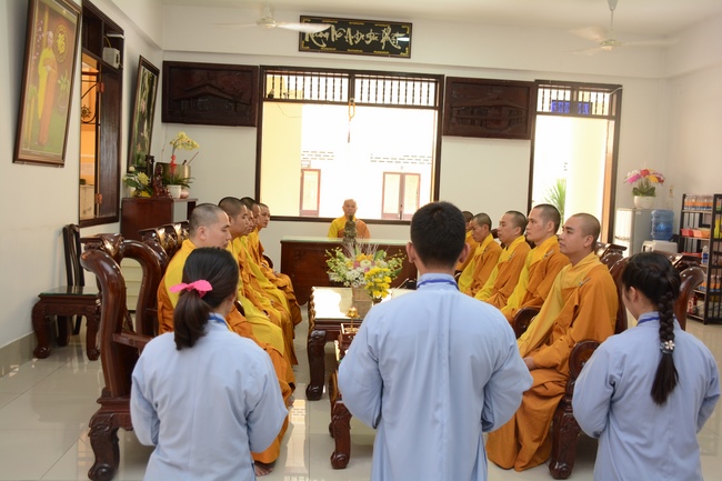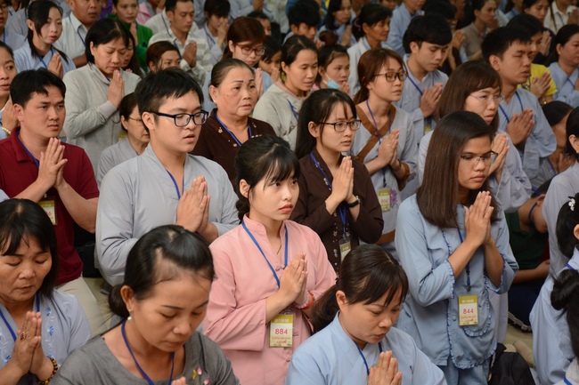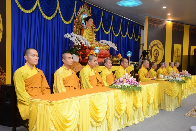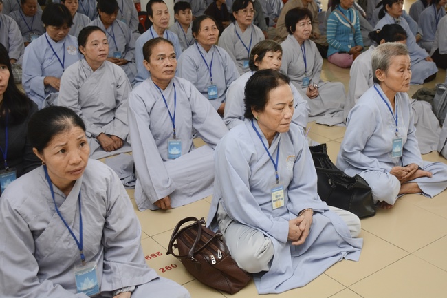 It takes one day for participants to join the entire ceremony. In the morning, everyone gathered at lecture halls for orientation course from Venerable Thich Tam Dao, Deputy Abbot of Hoang Phap, regarding Buddhism fundamentals (as taking refuge in Triratna, Five precepts, lay members, original master (holding Refuge ceremony for aspirant), abiding master (teaching religious matters to Buddhist when s/he cannot get the teachings from his/her original master due to some reasons)) and Buddhism etiquette (as pressing palm together, bowing, kowtowing, and lunch praying rite.