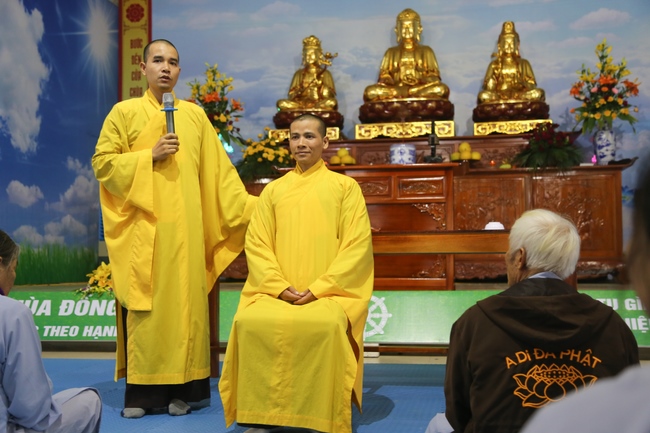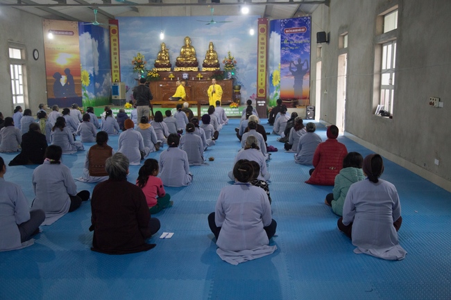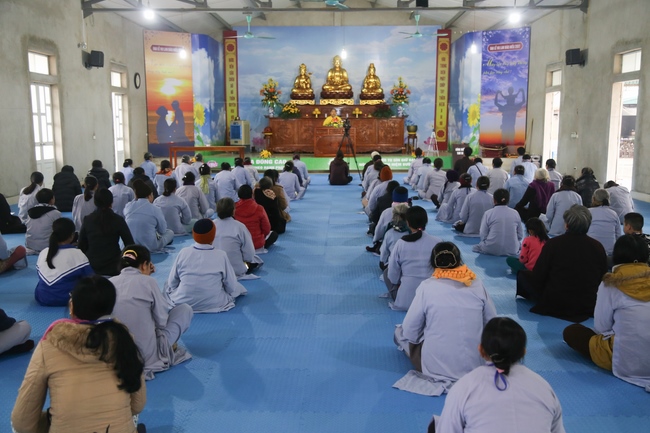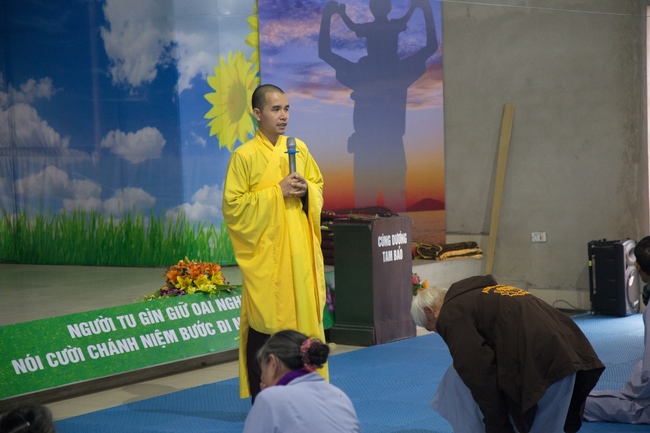 On the morning of Dec. 30th, 2017 Junior Thich Tam Hiep and Thich Tam Dieu, the monks of Hoang Phap Pagoda instructed in necessary dignities to present Buddhists. Next, Junior Thich Tam Hung, the Chief of organization board, announced retreat’s goal, instructed the cultivation’s schedule and obligatory rules to Buddhists so that they could perceive peace and contentment in cultivation days. On the morning of Dec. 31st, 2017, Junior Thich Tam Hung preached a dharma talk about the theme “The Sect of Purd Land.†By friendly and simple words, the Junior explained clearly about what is the Pure Land? People who pray to be borned into that realm must have delight in this life and try to construct this world’s becoming a pure land where everybody is also happy and study Buddha’s dharma.