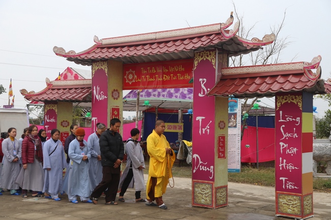Harmony with joyful atmosphere of welcoming birthday of the Buddha Ammitabha, in spite of weather on the winter, but overcoming all, the monks and Buddhist of Dong Cao Pagoda were preparing to decorate and construct the rostrum for congratulation. Particularly, on this occasion, pagoda organized the 3rd retreat of “Learning as the Buddha‘s practice†from Dec. 30th, 2017 to Jan. 3rd, 2018 (lunar Nov. 13th to 17th, Rooster Year).