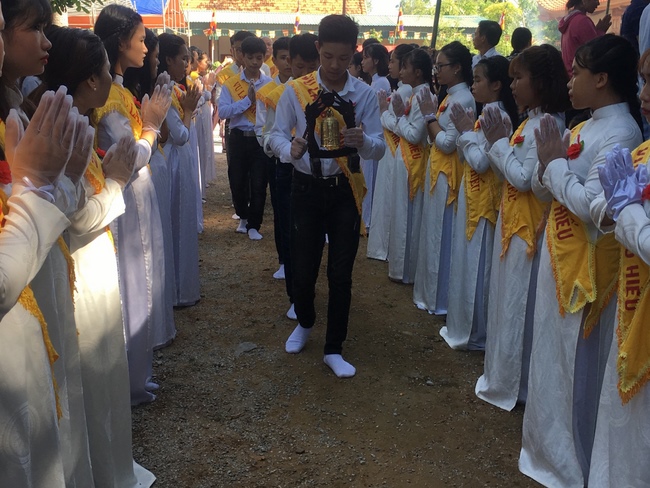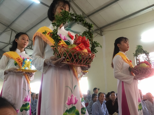 2.The great joyful day of greeting the event of Buddhists who sincerely, respectfully chanted the Buddha’s name and sutras, worshiped Buddha, offered Triratna and Sanghas of restraint which helps current parents increase their bless and longevity, and their past ancestors would release dark realm and born to the Pure Land.