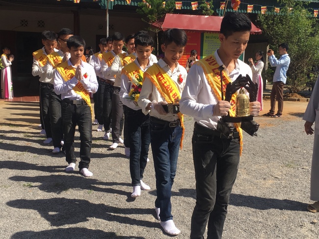 3.The great joyful day of greeting the event of right mindfulness and awareness was pinned on their left - chest a red rose which reminds them who remains parents, getting a happy condition. Happiness was all of us to gather, gladly united in a family with our siblings. Due to the life is impermanent, rose blooms, though being faded; party or meeting will also separate, etc; therefore, we should keep on our emotion, as our existence in a family or a team getting along well together.