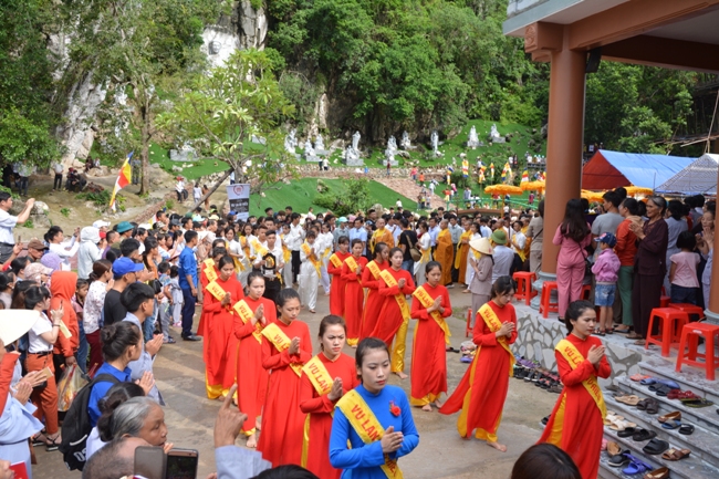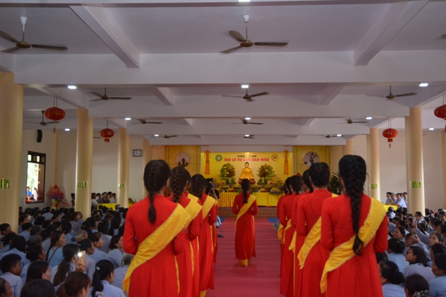 Coming to the festival this year, the religious believers at everywhere had a chance for their settling mind in accompanying with the program that has many performances in other levels of emotion. The program began in the solemn rite welcoming to martyrs with the memory‘s speech which is written by the Junior Abbot Ven. of Pagoda Co Am with the gratitude spirit of the Buddha's children.