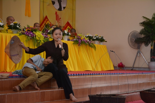 Next was a moved play about the mother. Although, the play was simple, it is full of enthusiastism from Buddhists. Then, this is the most importance iterm in the ceremony. That is the sacred rite of pinning roses by the meaningful speech. Although the ceremony at Co Am Pagoda still got some small faults in the organizational plan, any ones who attended to this festival had their emotion to the pagoda and understand clearly the sacred meaning as well as the pious spirit by the message that the organizers reminded call people in this Ullambana festival of parents’ gratitude.