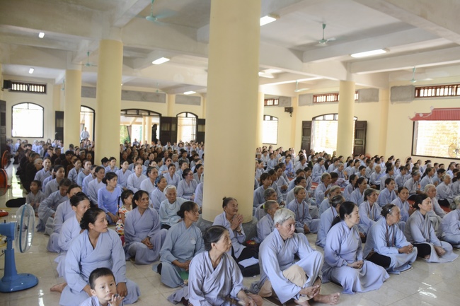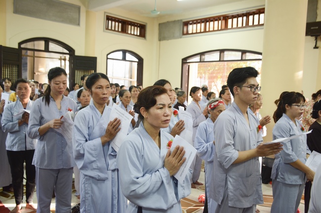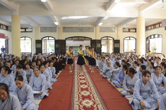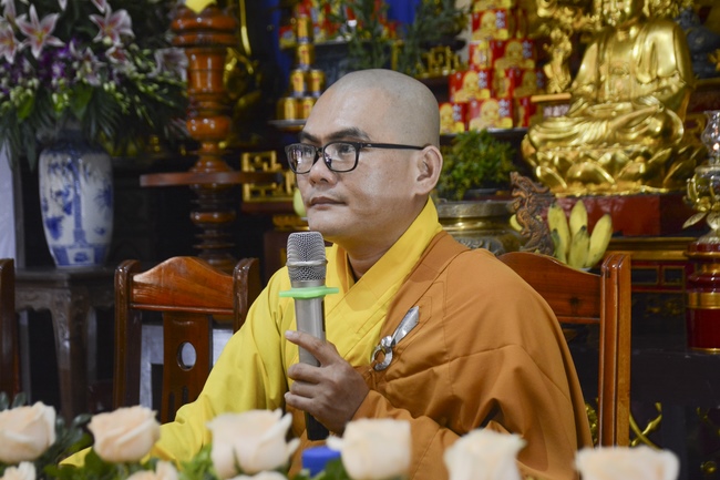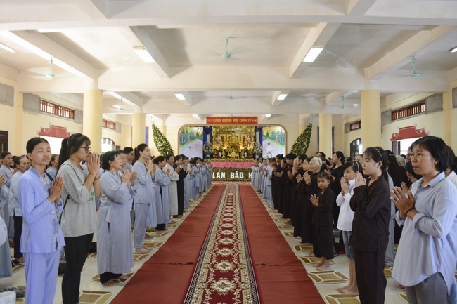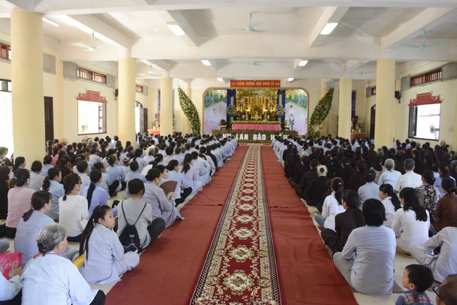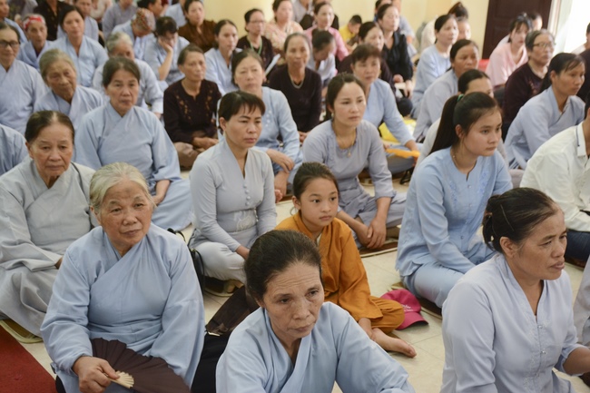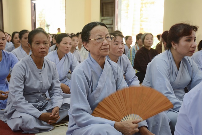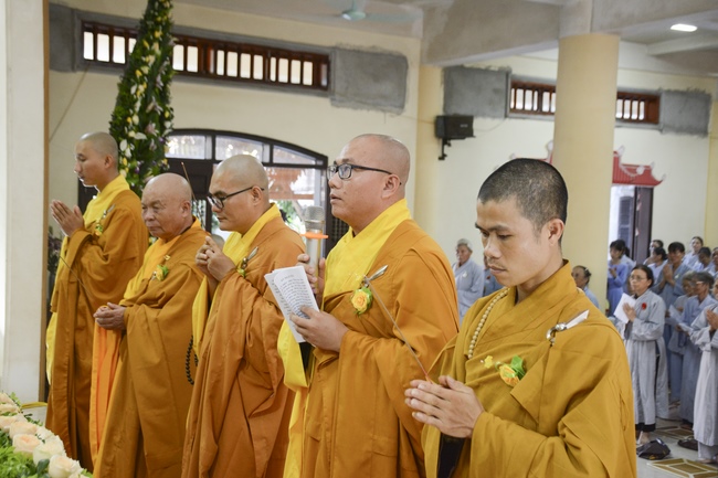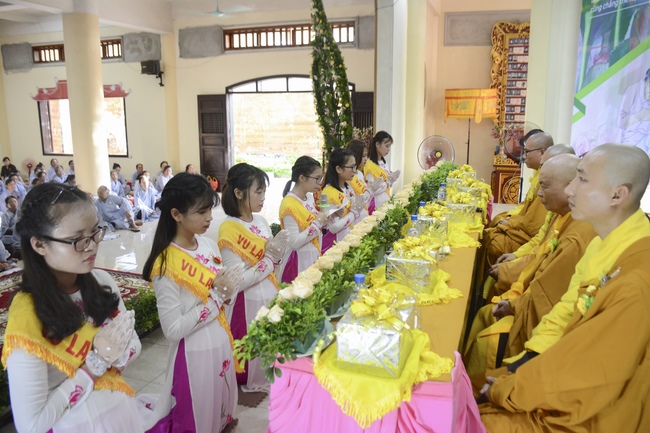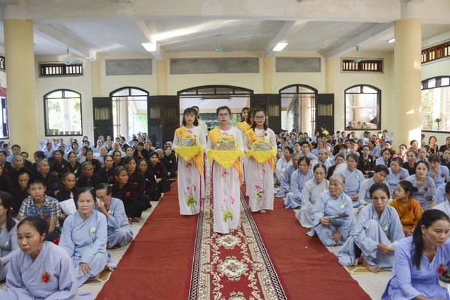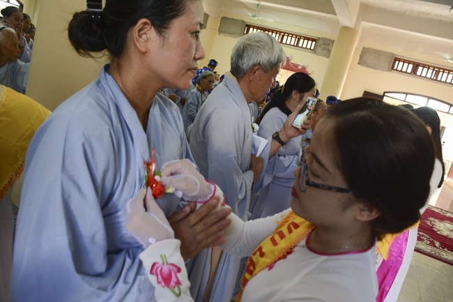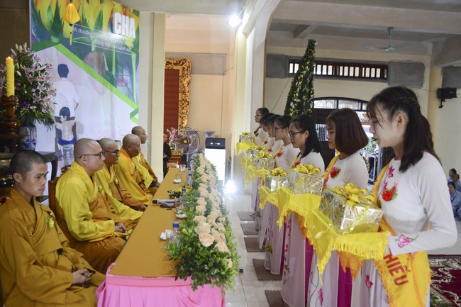 Before the ceremony, Junior Venerable Thich Dao Quang had the Dharma with the Buddhists. In the time of the dharma, he reminded the merit of birth giving and up-bringing from their ancestors and parents. On duty of a child, we could not only repay enough their merits by material support, but also guide parents to go to the pagoda, rely on Three Jewels to have happiness in this life and the next life.