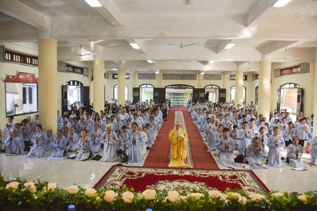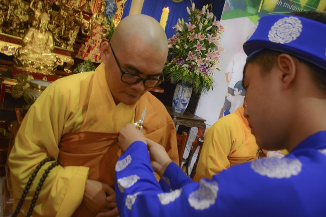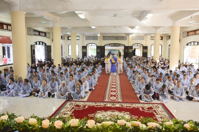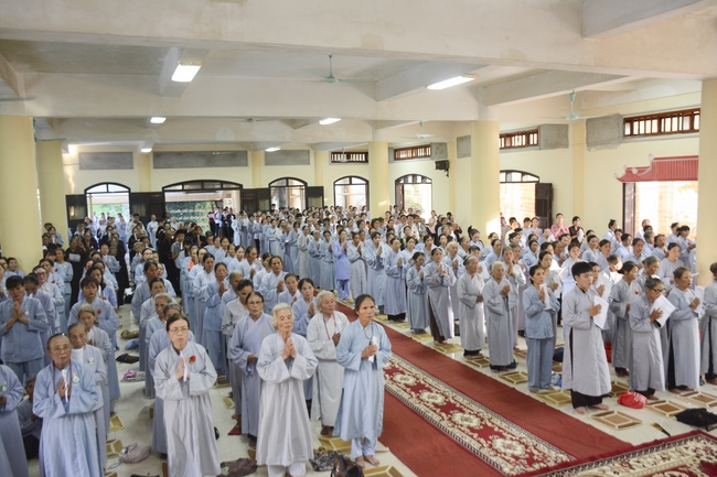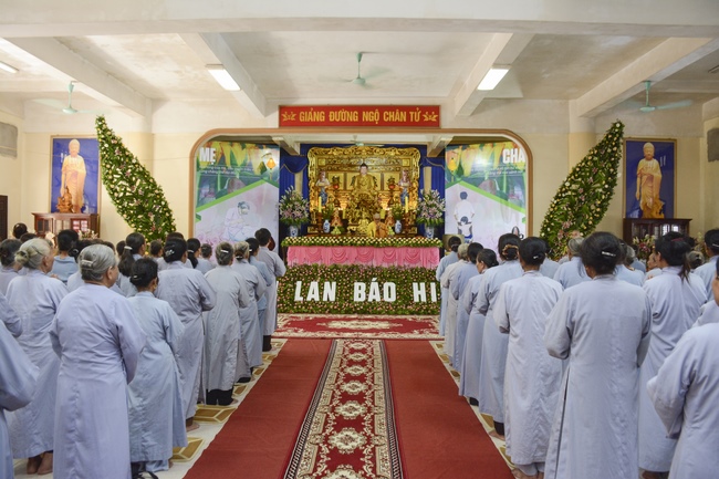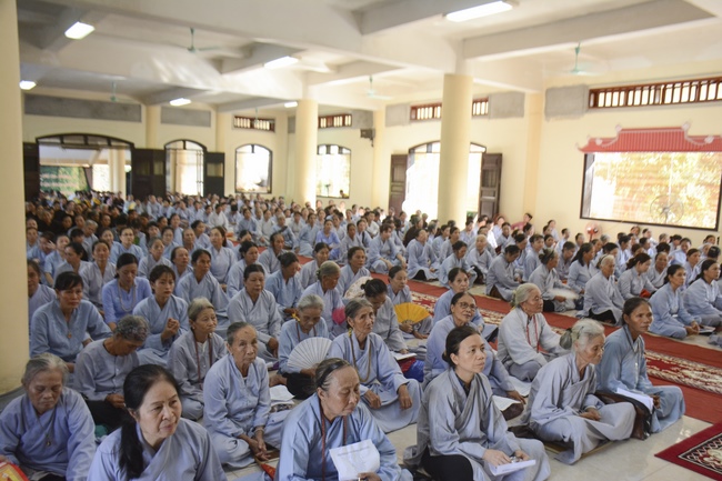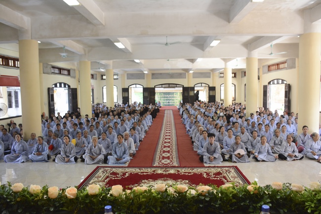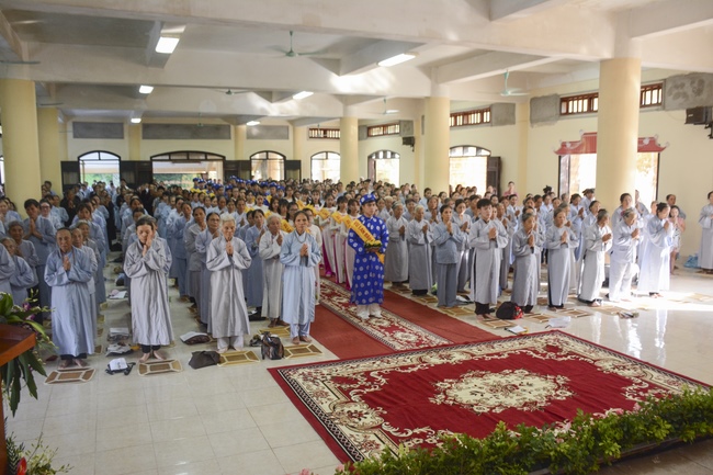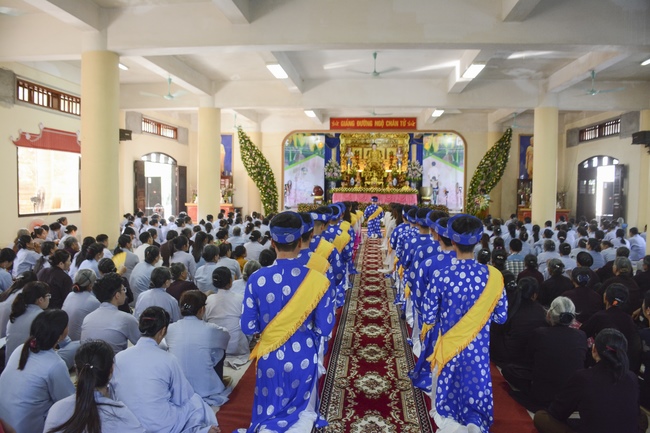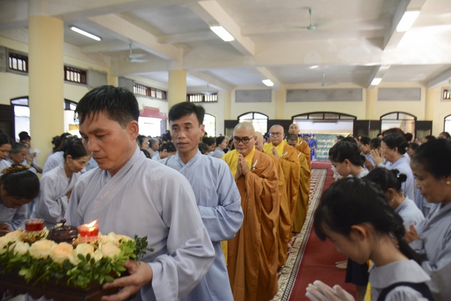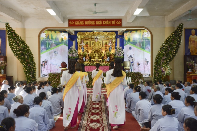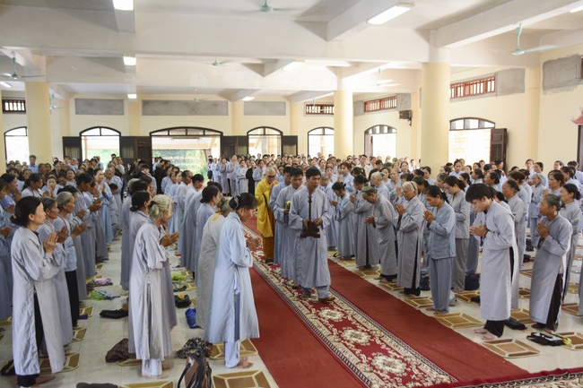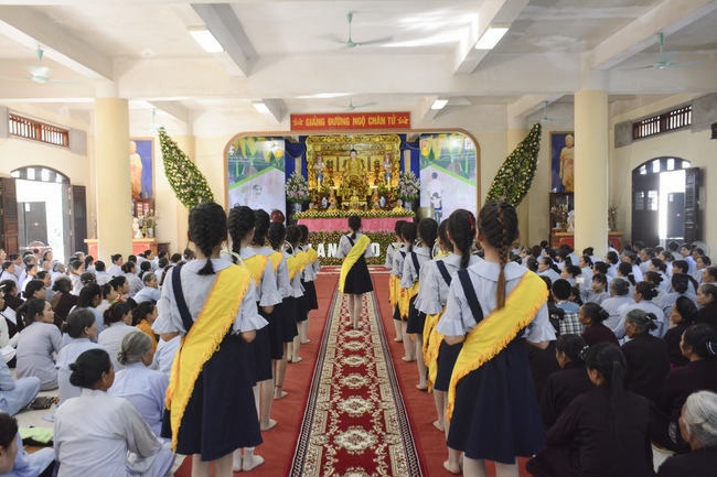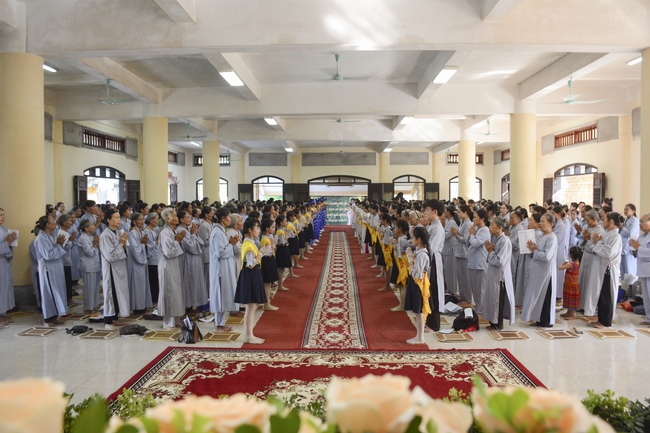 Before the ceremony, Junior Venerable Thich Dao Quang had the Dharma with the Buddhists. In the time of the dharma, he reminded the merit of birth giving and up-bringing from their ancestors and parents. On duty of a child, we could not only repay enough their merits by material support, but also guide parents to go to the pagoda, rely on Three Jewels to have happiness in this life and the next life.