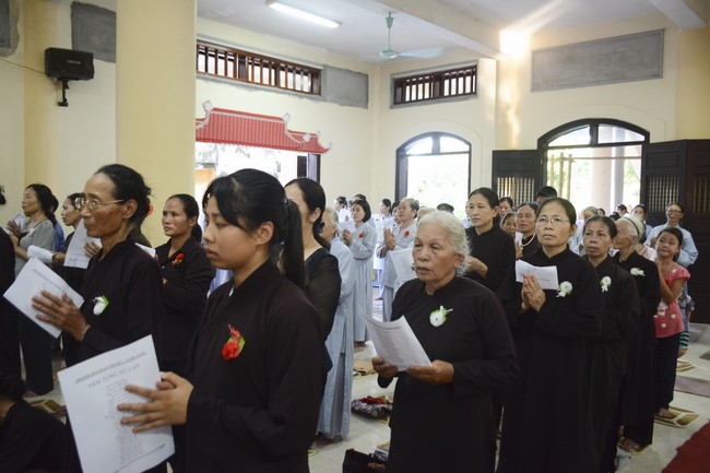 At the end of the ceremony, as usual, it is the time of Vu Lan chanting. Everyone commemorates the infinite merit of father's and mother's.