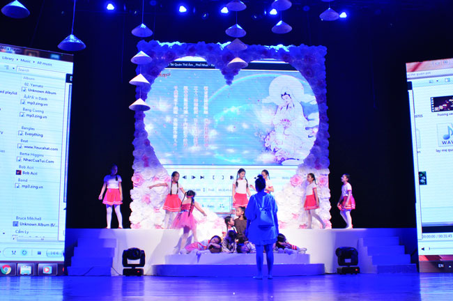 Following the achievements of the 7th Dieu Am Hoang Phap, preparation mission for the 8th Dieu Am Hoang Phap was processed during the past year. In orderto organize a great and imposing music program, directors, editors, program makers and Hoang Phap Pagoda have worked together for a long time to deal with sound record task, program arrangement and stage design, etc. One week before performing in public, Venerable Thich Chan Tinh (Head of artistic director) had many discussions about the program with all the monks and other departments to wishfor a successful performance night and deep impression to audience.
