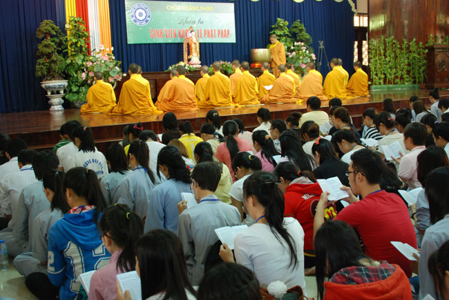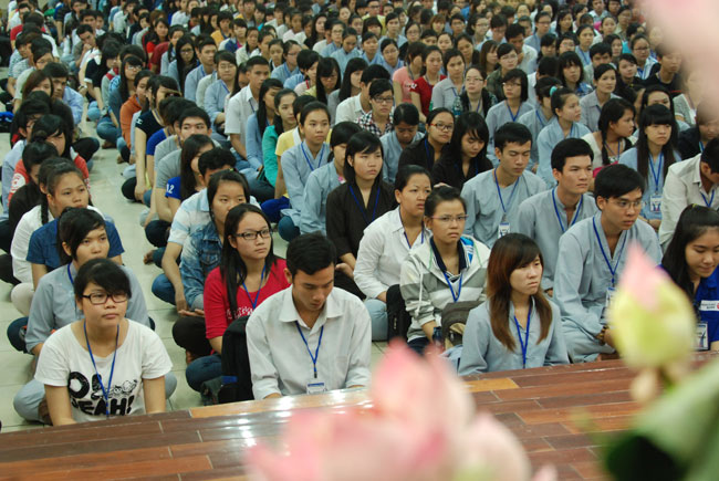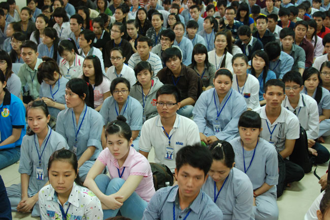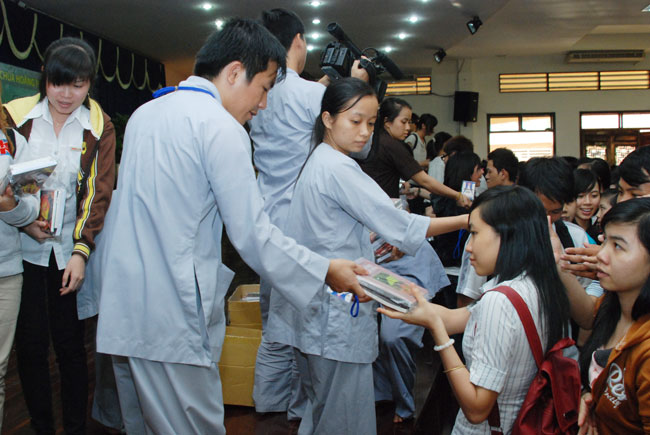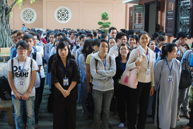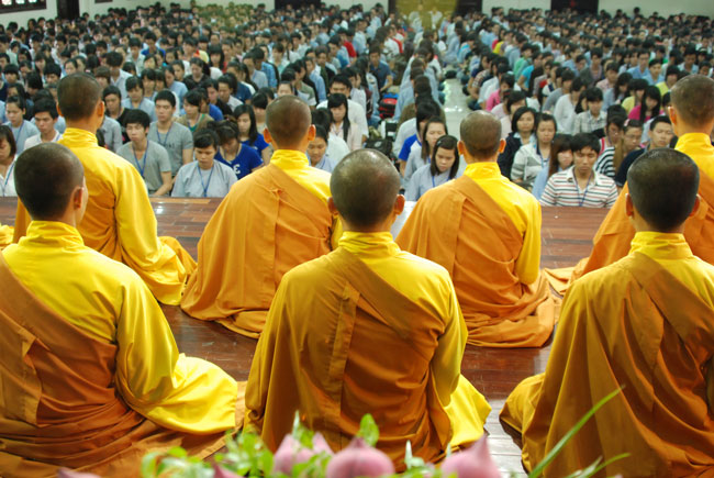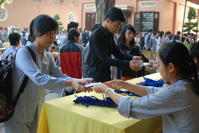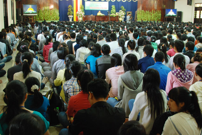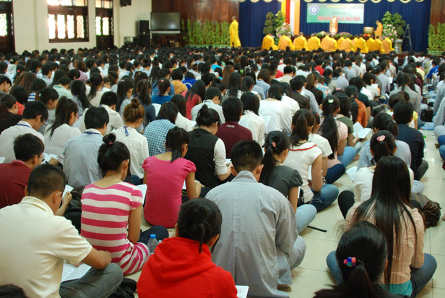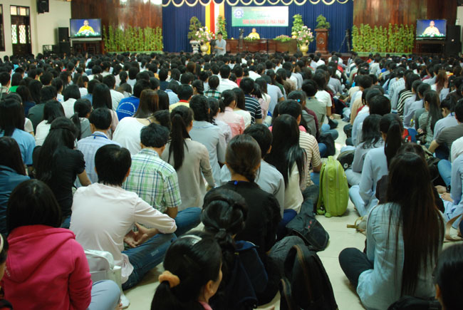 Retreat for Students Toward Student Right from Dharma. Update: 26/11/2012 Morning of 11.25.2012 (to date 12/10 year of the Dragon), nearly 2,000 students have attended a day of religious temples Students Toward Dharma. \r\n\r\n\r\nSau khi dùng Ä‘iểm tâm sáng tại trai đưá»ng, các bạn sinh viên nhanh chóng táºp trung vá» khu vá»±c giảng đưá»ng chính và giảng đưá»ng khu C theo sá»± sắp xếp cá»§a quý thầy. Khoảng 8h sáng, Äại đức Thích Tâm Hòa Ä‘ã bắt đầu thá»i pháp vá»›i chá»§ đỠLá»i Pháºt dạy vá» tình bạn cao thượng.\r\n\r\nTrong cuá»™c Ä‘á»i má»—i ngưá»i, ngoài những ngưá»i thân trong gia Ä‘ình là cha, mẹ, anh, chị, em... chúng ta may mắn còn có thêm má»™t ngưá»i thân nữa, Ä‘ó là những ngưá»i bạn. Ai cÅ©ng cần có bạn, bởi chúng ta luôn cần được sẻ chia, cần được cảm thông và hÆ¡n hết ta cần má»™t ngưá»i bạn chân thành cùng ta Ä‘i qua những giây phút khó khăn trong Ä‘á»i. Váºy làm thế nào để tìm được má»™t ngưá»i bạn Ä‘úng nghÄ©a? Trả lá»i cho câu há»i ấy, Äại đức Ä‘ã trình bày vá» bốn cách kết bạn trong kinh Hiá»n Nhân. Äó là: kết bạn như hoa, kết bạn như cân, kết bạn như núi và kết bạn như đất. Trong Ä‘ó “kết bạn như hoa” và “kết bạn như cân” là kiểu tình bạn không bá»n lâu vì nó mang tính chất lợi dụng, toan tính, chạy theo váºt chất. Ngược lại, “kết bạn như núi” và “kết bạn như đất” má»›i là tình bạn chân chính vì nó được xây dá»±ng từ sá»± chân thành, hiểu và thương, bao dung và tha thứ, cùng động viên giúp đỡ nhau trong cuá»™c sống. Äó là tình bạn cao thượng.\r\n\r\nTiếp Ä‘ó là phần vấn Ä‘áp giữa các bạn sinh viên và Äại đức giảng sư trong phạm vi bài giảng.\r\n\r\nSau khi dùng cÆ¡m trưa và nghỉ ngÆ¡i, các bạn được quý thầy hướng dẫn tụng kinh Vu Lan và thá»±c táºp giây phút tÄ©nh lặng để quay lại quán chiếu ná»™i tâm cá»§a mình. Sau cùng là buổi giao lưu văn nghệ vá»›i những tiết mục do chính các bạn sinh viên cá»§a những câu lạc bá»™: Sinh Viên Hoằng Pháp, Tuổi Trẻ và Pháºt Pháp, nhóm Há»™ Pháp Viên…..buổi giao lưu diá»…n ra trong không khí sôi động và vui vẻ.\r\n\r\nKết thúc ngày tu, má»—i bạn sinh viên được BTC gá»i tặng má»™t phần quà Pháp Bảo gồm: CD ÄÆ°á»ng Xưa Mây Trắng, VCD Tuổi Trẻ Và Hành Trang Chữ Nhẫn, Lược Truyện Äức Pháºt Thích Ca, Trái Tim Mặt Trá»i, Con ÄÆ°á»ng Chuyển Hóa.\r\n\r\n \r\n\r\nDưới Ä‘ây là hình ảnh được ghi nháºn:\r\n\r\n \r\n\r\n \r\n\r\n \r\n\r\n \r\n\r\n \r\n\r\n \r\n\r\n \r\n\r\n \r\n\r\n \r\n\r\n \r\n\r\n \r\n\r\n \r\n\r\n \r\n\r\n \r\n\r\n \r\n\r\n \r\n\r\nÄại đức Thích Tâm Hòa chia sẻ Pháºt pháp vá»›i các bạn sinh viên\r\n\r\n \r\n\r\n \r\n\r\n \r\n\r\n \r\n\r\n \r\n\r\n \r\n\r\n \r\n\r\n \r\n\r\n \r\n\r\n \r\n\r\n \r\n\r\n \r\n\r\n \r\n\r\n \r\n\r\n \r\n\r\n \r\n\r\n \r\n\r\n \r\n\r\n \r\n\r\n \r\n\r\nXếp hàng vào trai đưá»ng dùng cÆ¡m trưa\r\n\r\n \r\n\r\n \r\n\r\n \r\n\r\n \r\n\r\n \r\n\r\nNghi thức cúng quá đưá»ng\r\n\r\n \r\n\r\n \r\n\r\n \r\n\r\n \r\n\r\n \r\n\r\n \r\n\r\n \r\n\r\n \r\n\r\n \r\n\r\nThá»i tụng Kinh Vu Lan (buổi chiá»u)\r\n\r\n \r\n\r\n \r\n\r\n \r\n\r\n \r\n\r\n \r\n\r\n \r\n\r\n \r\n\r\n \r\n\r\n \r\n\r\n \r\n\r\n \r\n\r\n \r\n\r\n \r\n\r\n \r\n\r\n \r\n\r\n \r\n\r\n \r\n\r\n \r\n\r\n \r\n\r\n \r\n\r\n \r\n\r\n \r\n\r\n \r\n\r\nGiá» tịnh tá»a \r\n\r\n \r\n\r\n \r\n\r\n \r\n\r\n \r\n\r\nGiao lưu văn nghệ vá»›i các bạn trong CLB Sinh Viên Hoằng Pháp\r\n\r\n \r\n\r\n \r\n\r\n \r\n\r\n \r\n\r\n \r\n\r\n \r\n\r\n \r\n\r\n \r\n\r\n \r\n\r\n \r\n\r\n \r\n\r\n \r\n\r\nThầy Tâm Hiếu (trên) và thầy Tâm Trung cÅ©ng góp vui trong chương trình \r\n\r\n \r\n\r\n \r\n\r\n \r\n\r\n \r\n\r\nCác bạn sinh viên được BTC gởi tặng 1 phần quà trước khi ra vá»\r\n\r\n \r\n\r\n \r\n\r\nBBT WebSite\r\n\r\n Facebook Google Tweet News Category Related News One Day Retreat for Students 25/04/2021 One Day Retreat for Student 28/03/2021 One Day Retreat for Student 24/01/2021 The Youth Retreat of "Return to a peaceful place" at Hoa Phuc Pagoda, Hanoi 07/01/2021 The retreat of Tea Meditation “Return to Listen” at Hoa Phuc Pagoda. 20/10/2020 View All The news was posted: View posted in this day Posted to this date