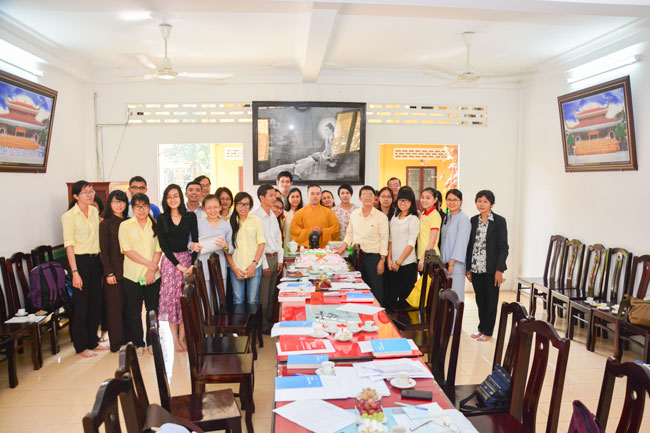 At the end of meeting, on behalf of the Abbot, Junior Ven. Thich Tam Dao granted lucky envelops, Dharma gifts and invited them with a warm vegetarian lunch.