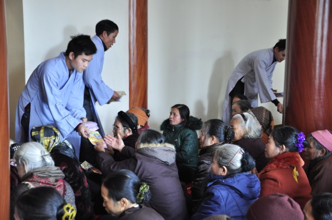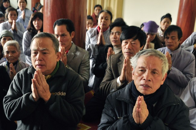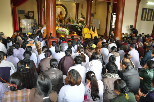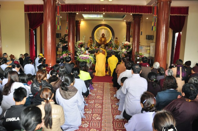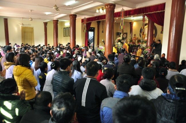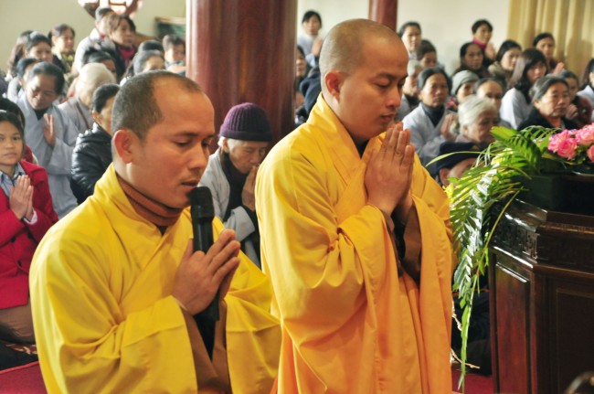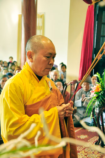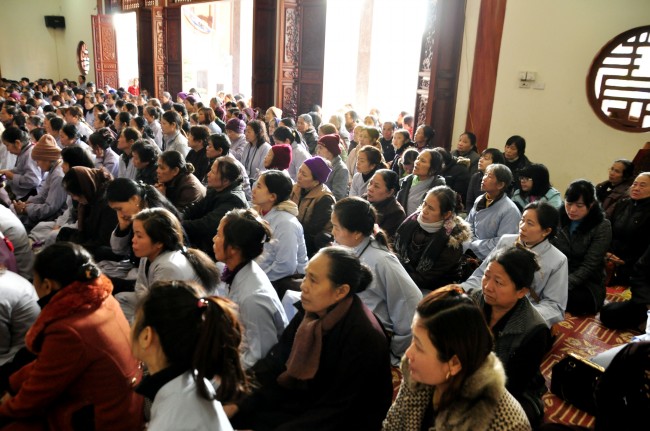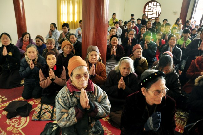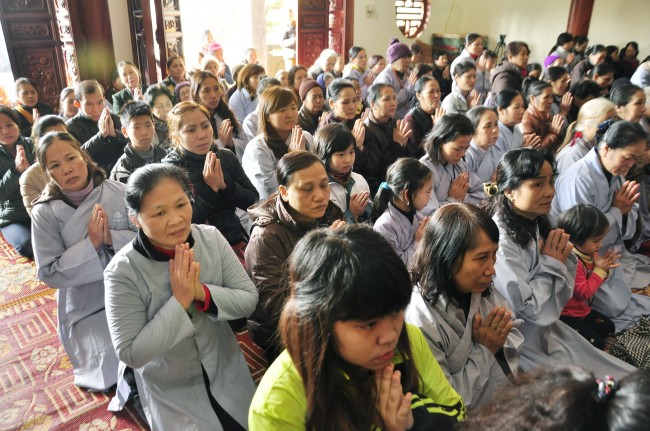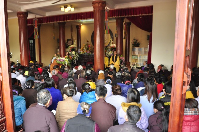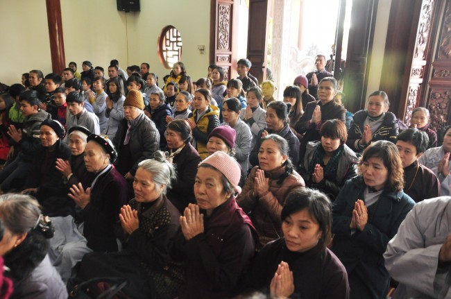 Despite the cold weather, Buddhists gathered to attend the\r\nceremonies from the early day in pagoda.