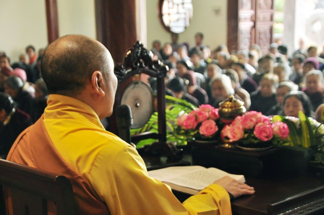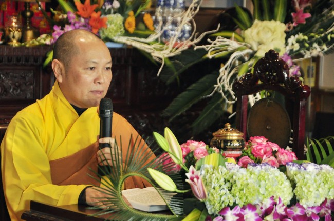 With few simple words, he helped Buddhists with accurate\r\nunderstanding of taking refuge. After that, by the spirit if asking for the\r\ndharma, believers solemnly and respectfully held their hands to receive\r\ntranquil precepts.