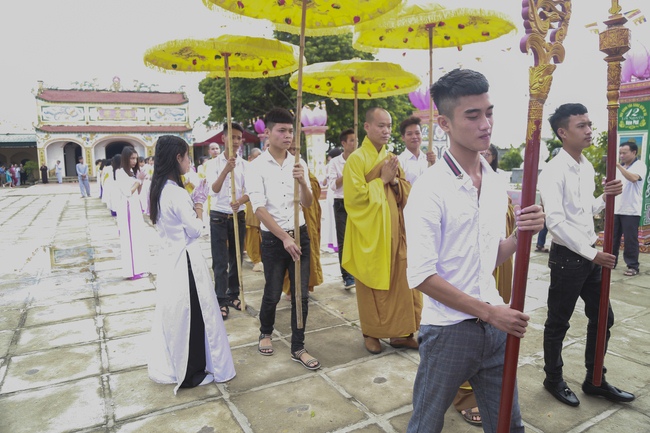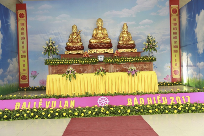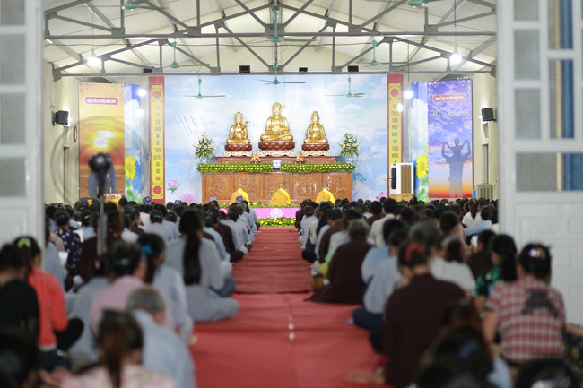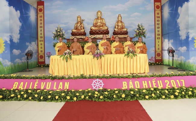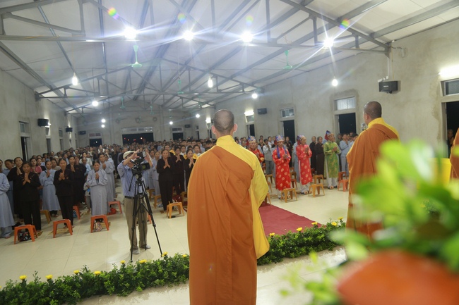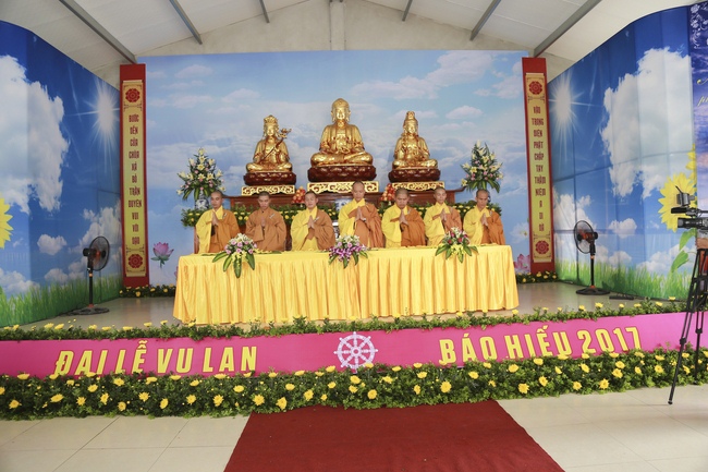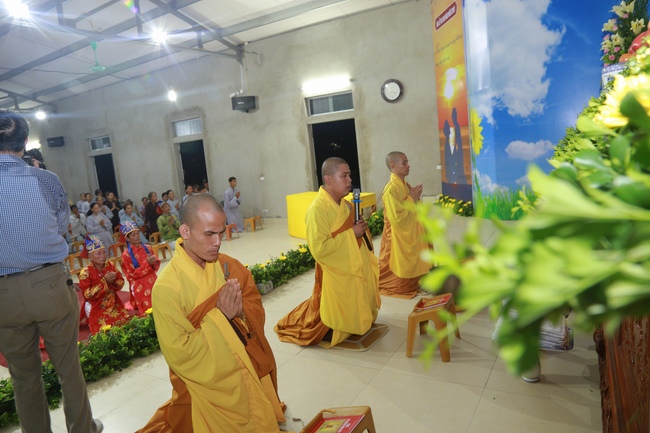 In the evening of August 27th, 2017 (lunar July 6th, Rooster Year) after the singing performance on parents’ merit from Dong Cao Pagodas’ young Buddhists, all good man and believing woman respectly welcomed all venerable Sanghas who came to the mail hall to witness and celebrate the great ceremony.
