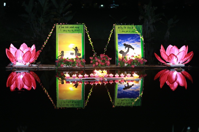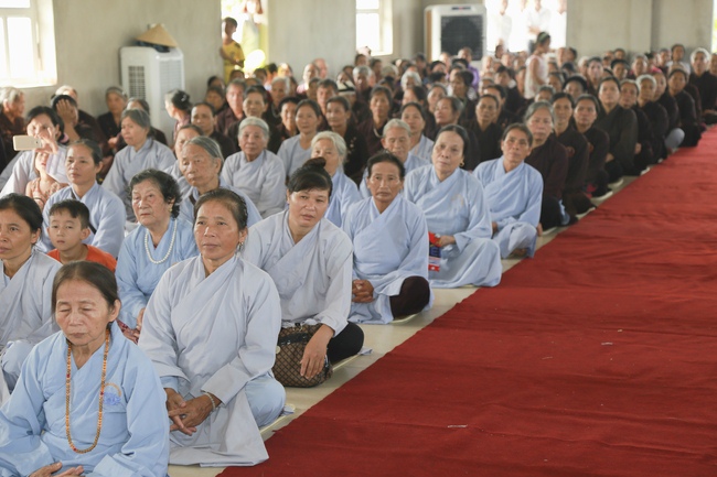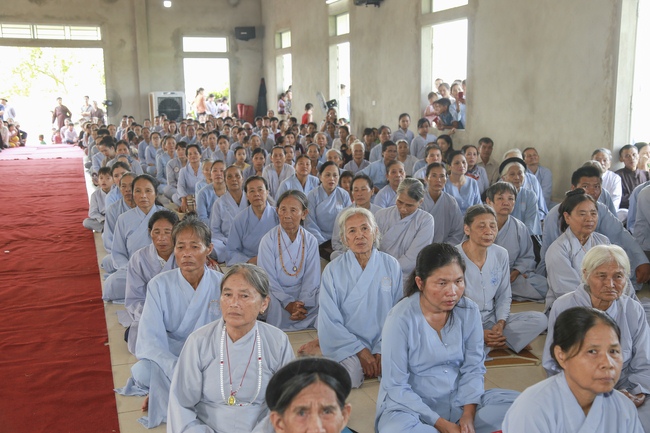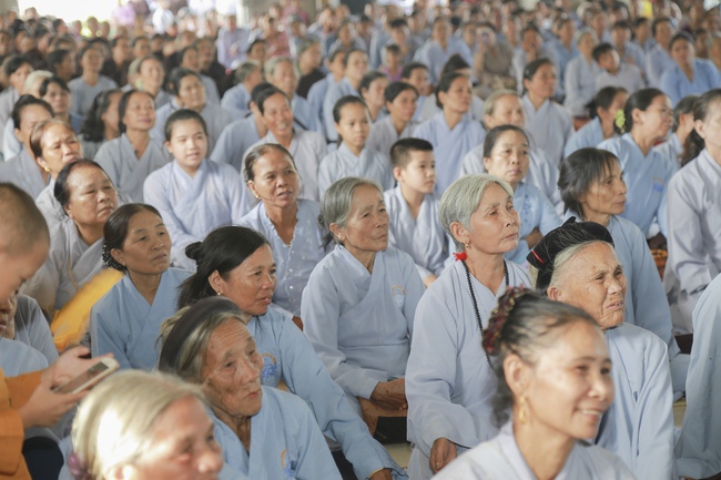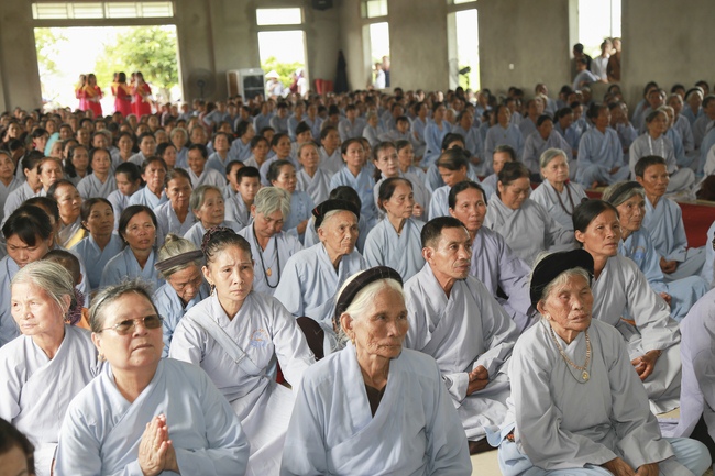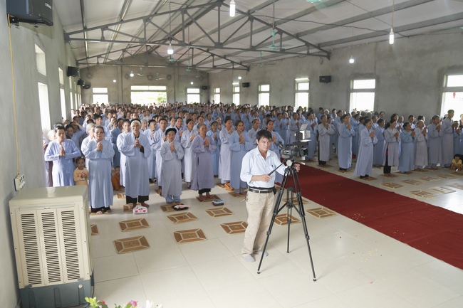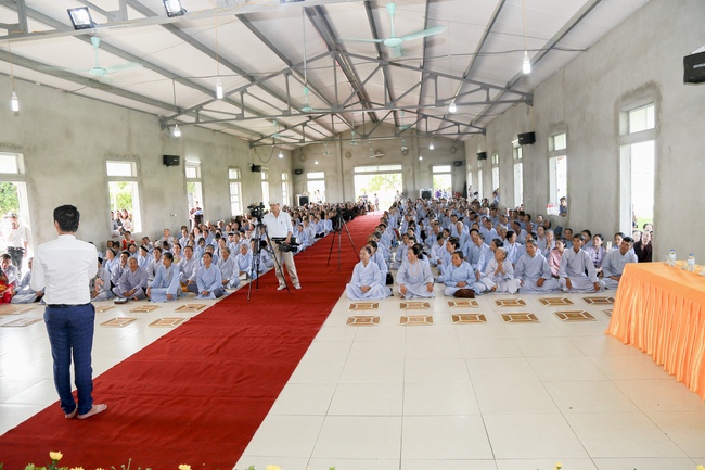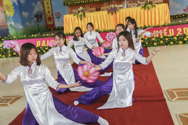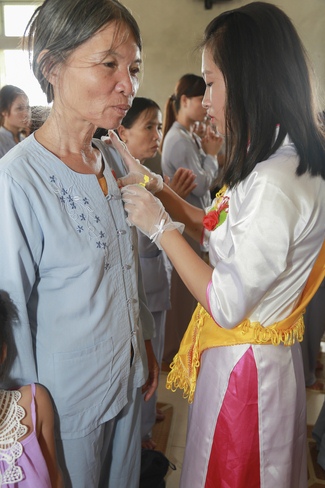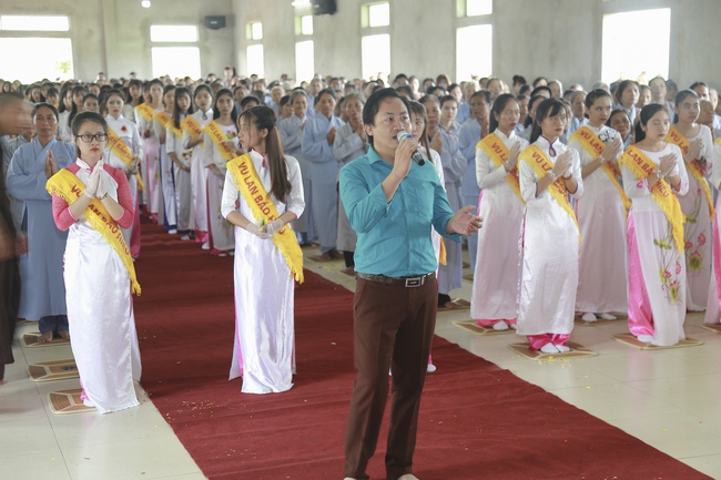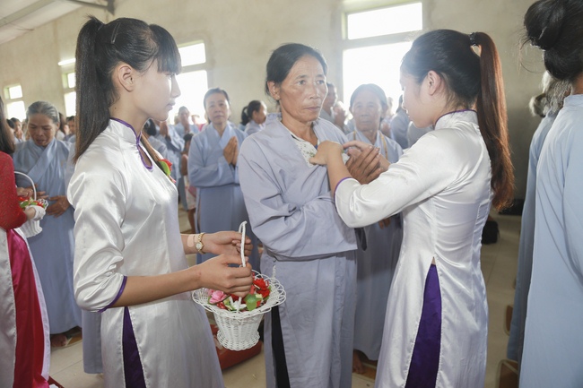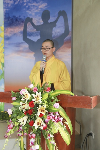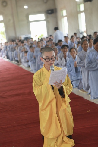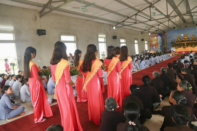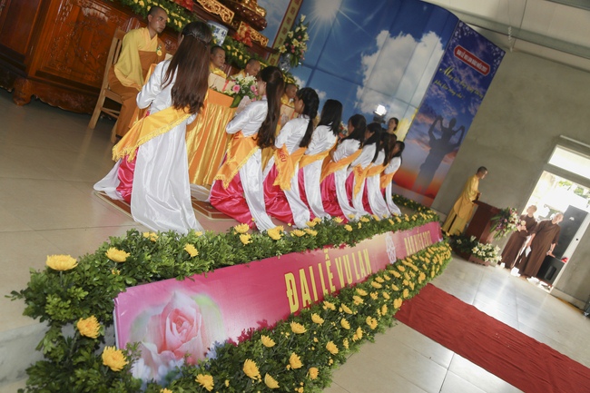 Next, it was the rite of rose flower pinning. All of mandala listened to Buddhist Nghiem Thi Hoa reading its significance. On that sacred moment, all mass had one minute of quietness to remember the Buddha’s great merit, the master’s gratitude of initial instructing and teaching, parents’ merit of giving birth and bringing up, as well as, the gratitude to the nation, people, the other kinds of beings, martyrs’ soul who had sacrificed for the nation’s happiness and peacefulness.