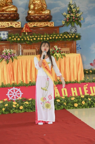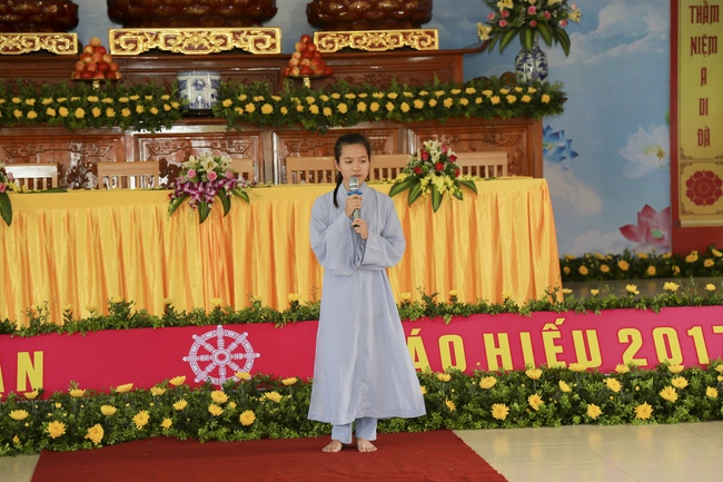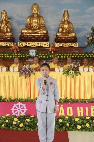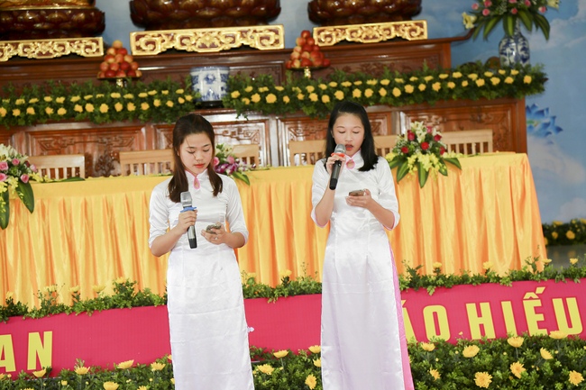Specially in this great ceremony, little Buddhist Mai Thu Ngan told the story of pious deeds in friendly and simple words, which helps all attendees understand more the parents’ great merit.