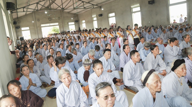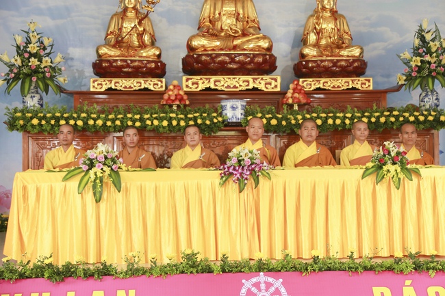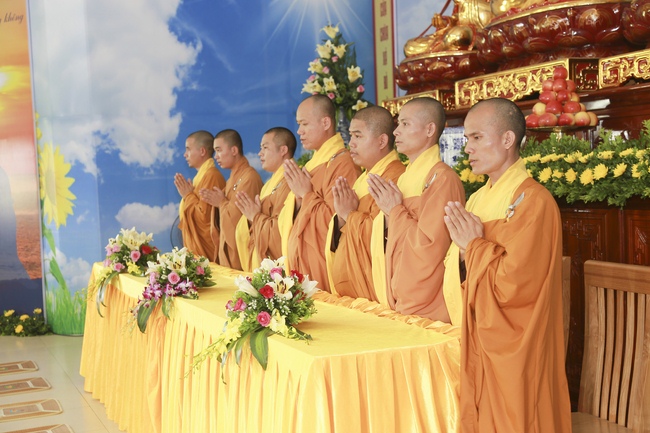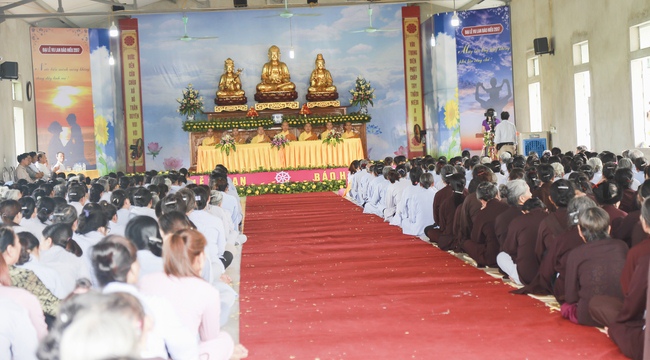 The attendance deputies were Junior Ven. Thich, Tam Hieu, Permanent Committee of Director Board (the D.B) of Viet Nam Buddhism Associastion (V.B.A) in Nghe An Province, Abbot of Can Mon Pagoda ; Junior Ven. Thich Thanh Dat , Committee of the D.B of V.B.A in Thanh Hoa Province, The Chief of the D.B of V.B.A in Hau Loc District, Abbot of Tam Giao Pagoda; Junior Ven. Thich Tam Hung, Abbot of Dong Cao Pagoda, the Chief of D.B of the great ceremony; as well as all Sanghas Ven. of Hoang Phap Pagoda in HCMC. The deputies of noble guests were Mr. Pham Tri But, Committee of District, Secretary of Nga Yen Commune, and the guest on other levels of local authorities.