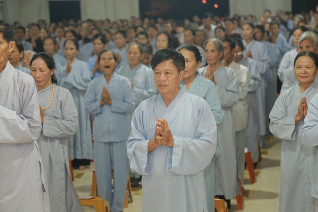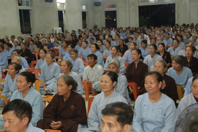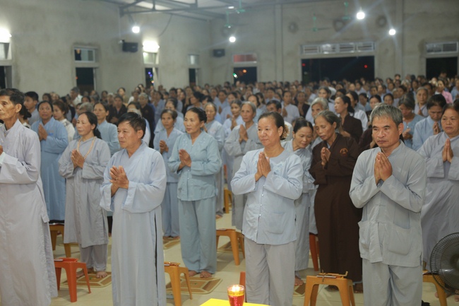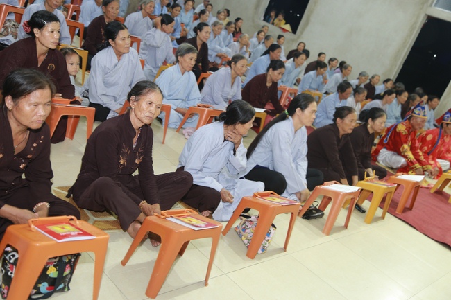 At 9 P.M in the evening of August 26th, 2017 (lunar July 5th, Rooster Year), on behalf of the monks, Junior Ven. Thich Tam Hung explained “the Ullambana Significance†and adviced the mass who should transfer their mind and body to be peaceful and happy for themselves, then they could give their merits to their ancestor. Next, he and all Buddhists officially chanted the sutra of praying for their ancestors, martyrs, and guiltless foetus.