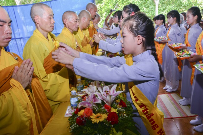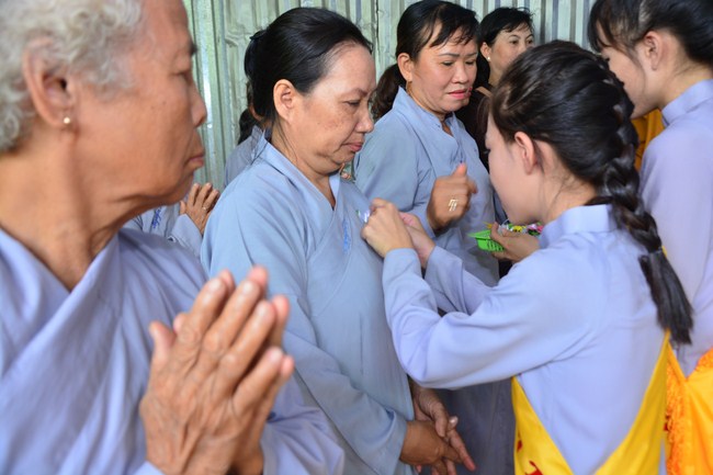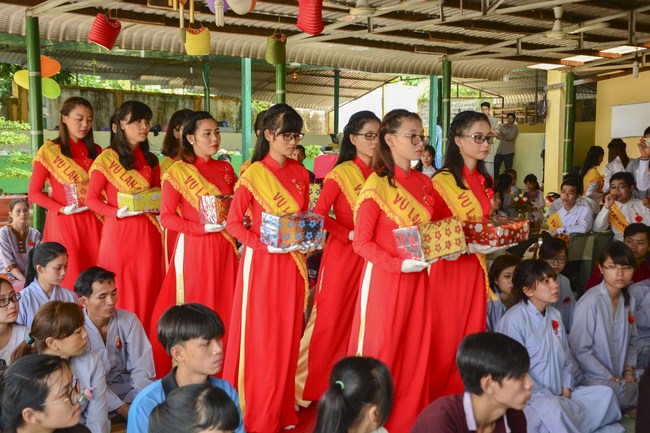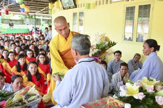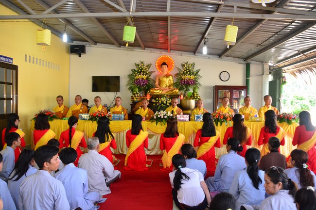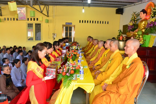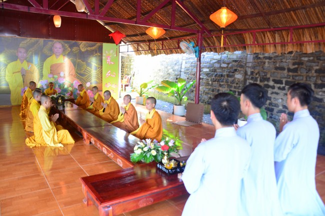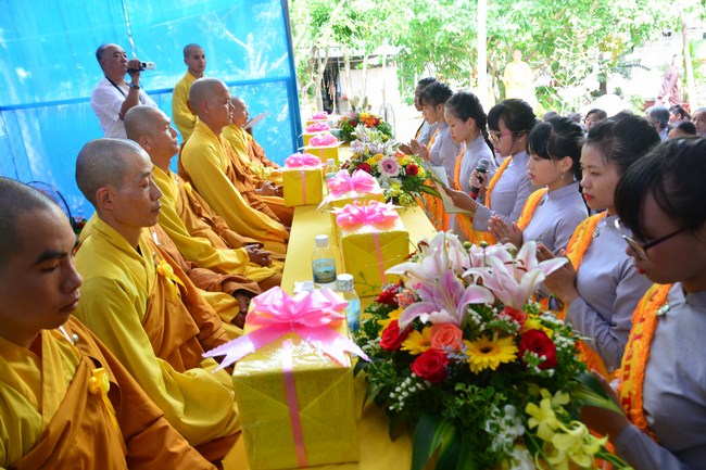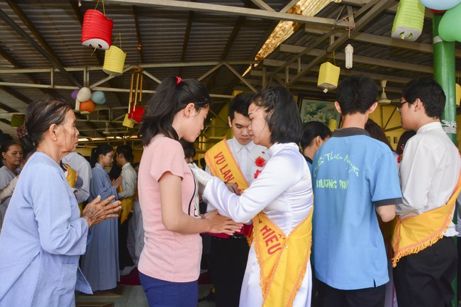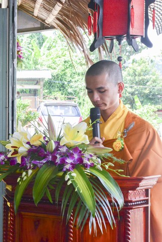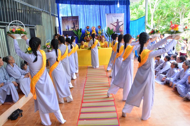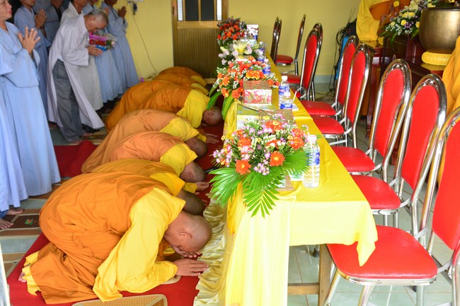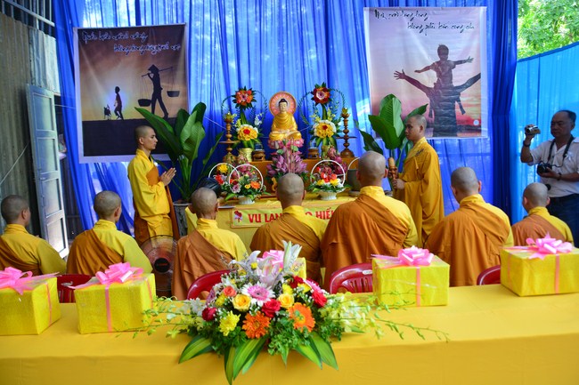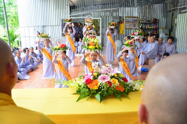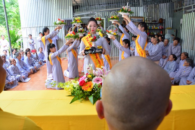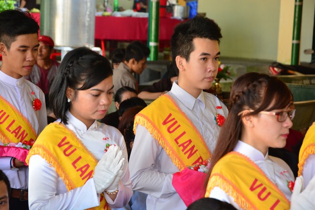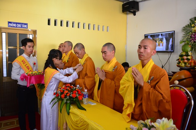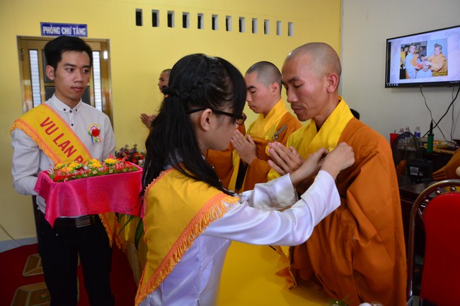 It is the chance to express their pious mind toward their parents. Therefore, though the material facilities of two pagodas were in dissufficientcy, the venerables decisively organized the great Ullambana ceremony with all rituals such as offering of six items, robes, pinning roses.